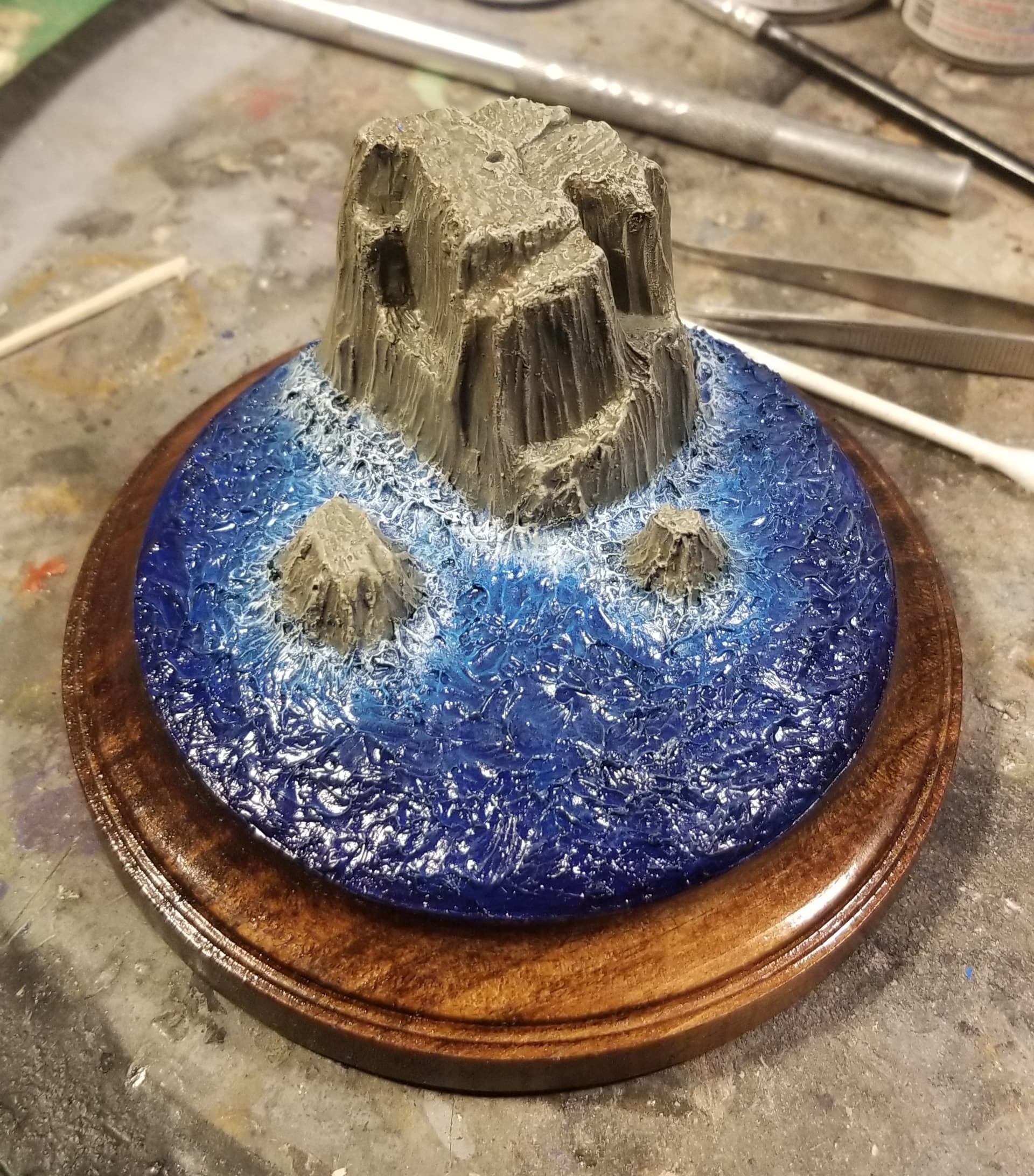 Trying a technique I learned from Rick Cantu years ago. Over a basecoat I sprayed transparent paint and then spritz Isopropyl alcohol to break up the paint into organic shapes. First layer was burnt umber then red. Think it turned out pretty good!