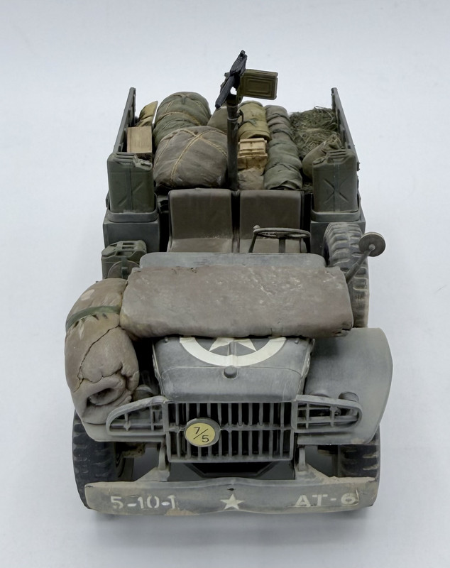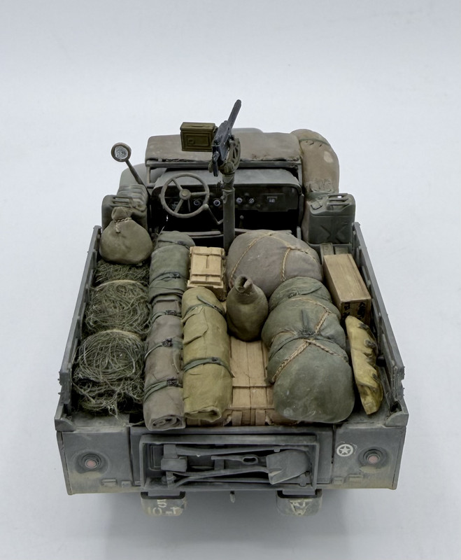 So I am calling this one done, aside from the crew figures. The kit itself was built OOB, although I did add a Combat Series brass machine gun pintle mount and took an Academy M1919 Browning .30 cal. from my spares bin for the gun itself. Most of the stowage is Value Gear, aside from the jerry cans, which are a mix of Tamiya, Academy, and 3D printed. Base paint is AK Real Colors. Most of the kit decals self destructed due to age, so replacements came from my spares…