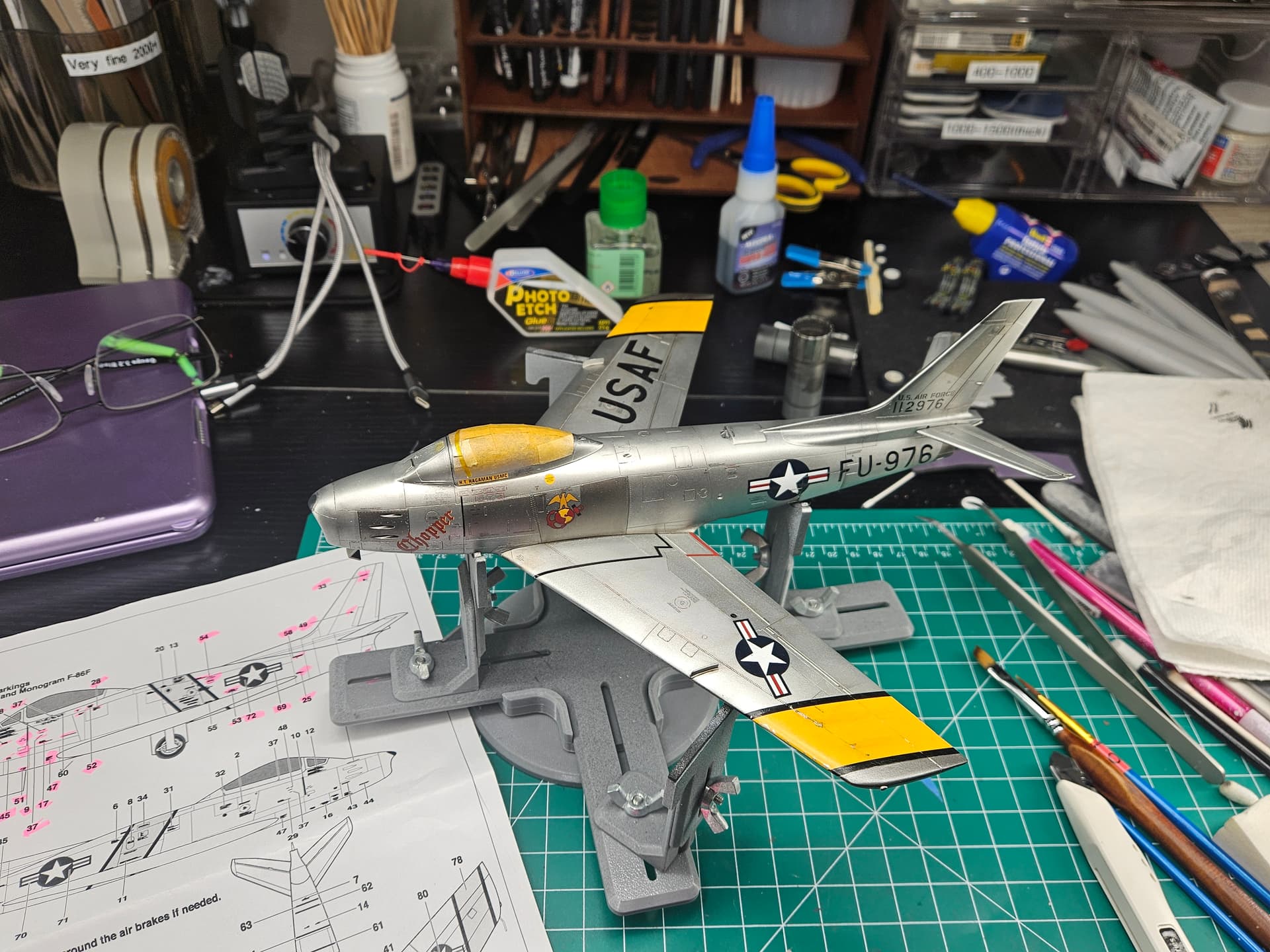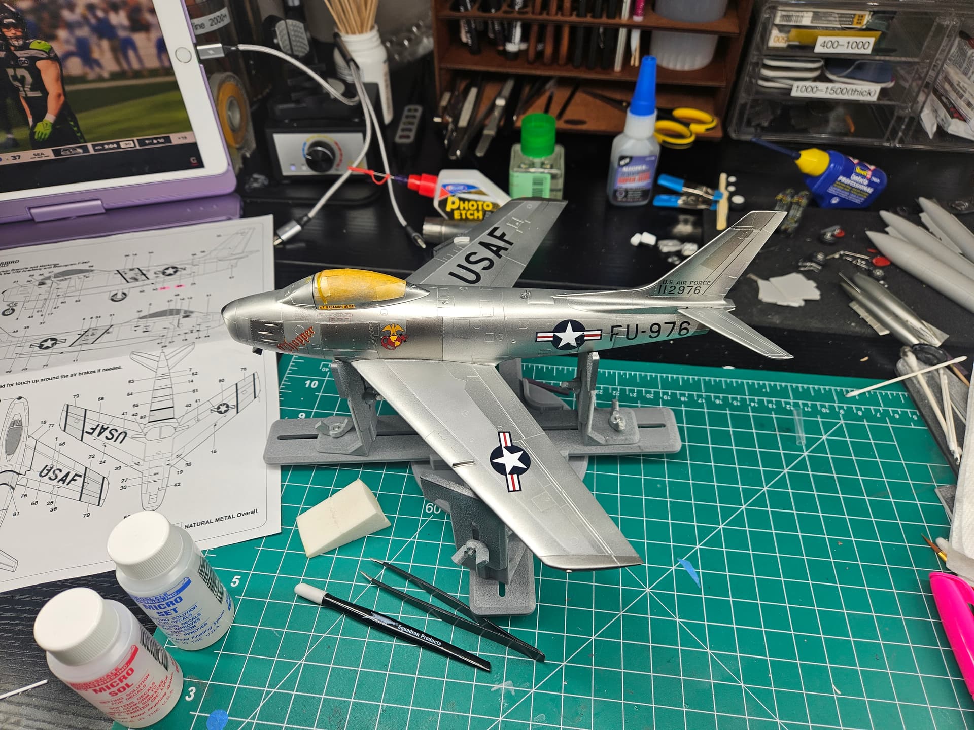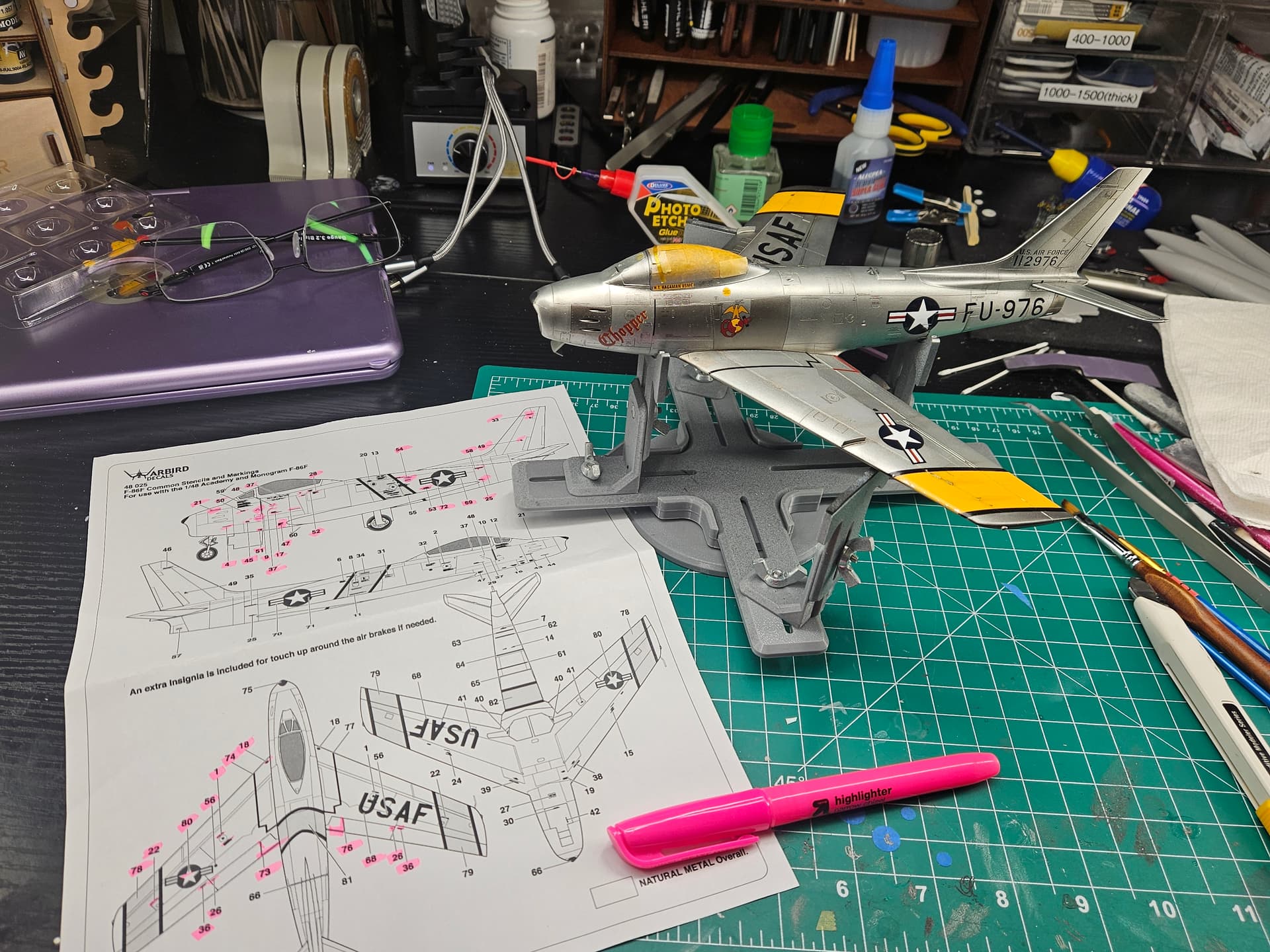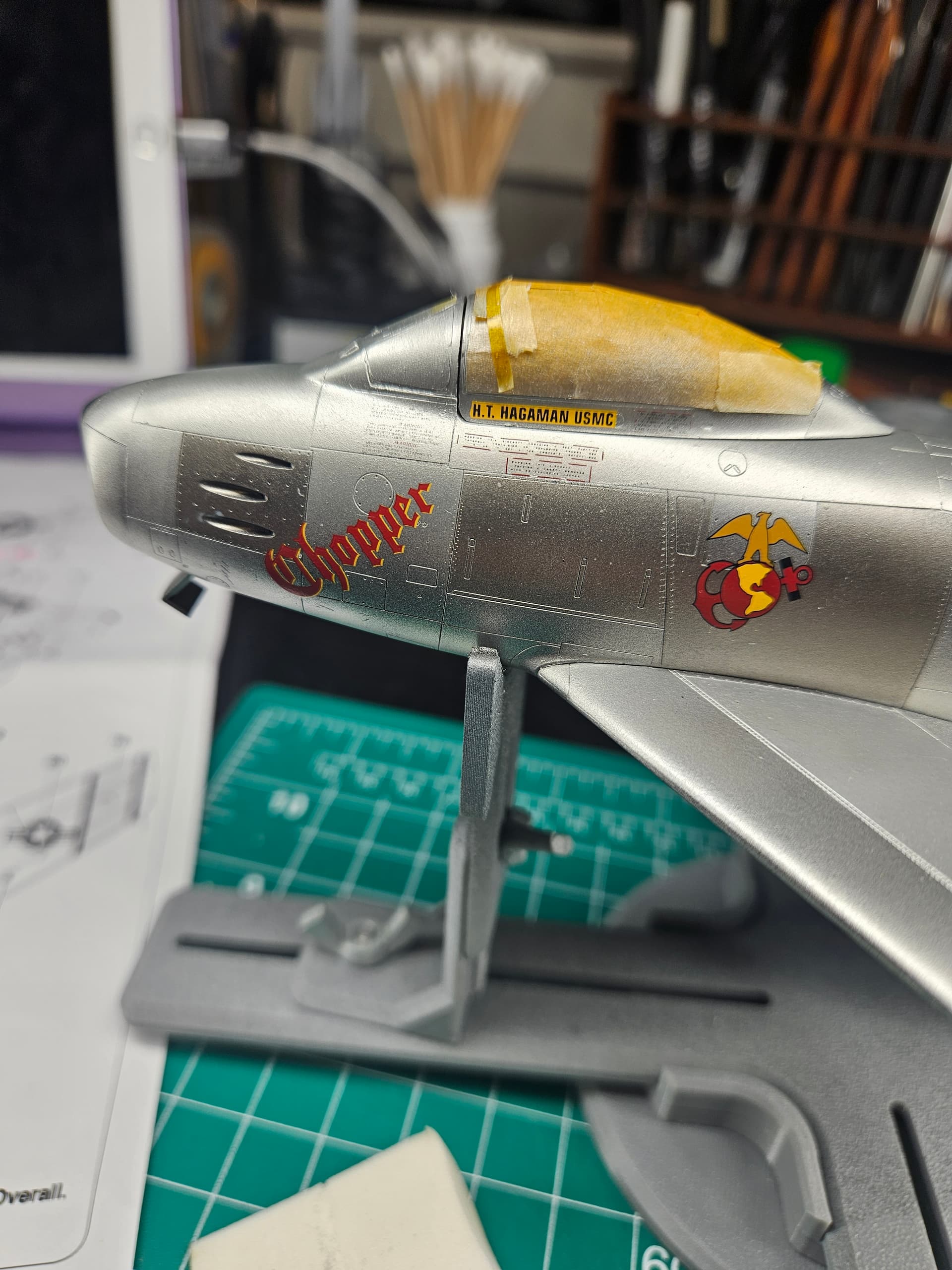 I let the Gaalerhi gloss clear coat dry overnight and I’m very pleased to report it didn’t diminish the NMF at all! Next, I went over the entire surface with wet 8000 grit sanding sponges to make it perfectly smooth. And the decals from warbird are molding in like paint. Best I’ve ever used.