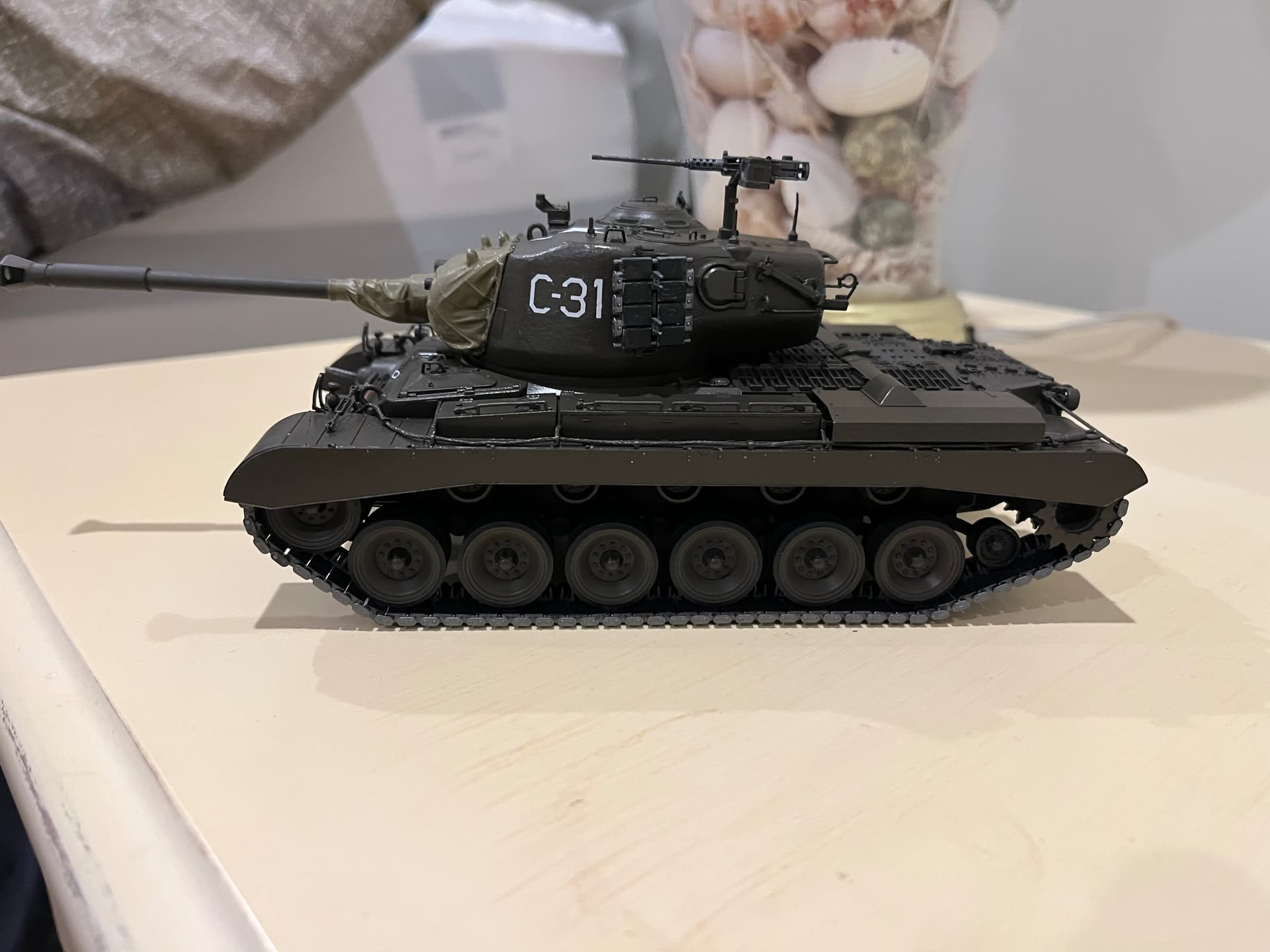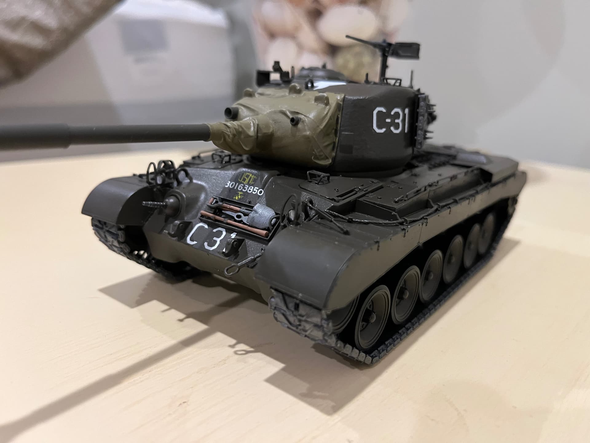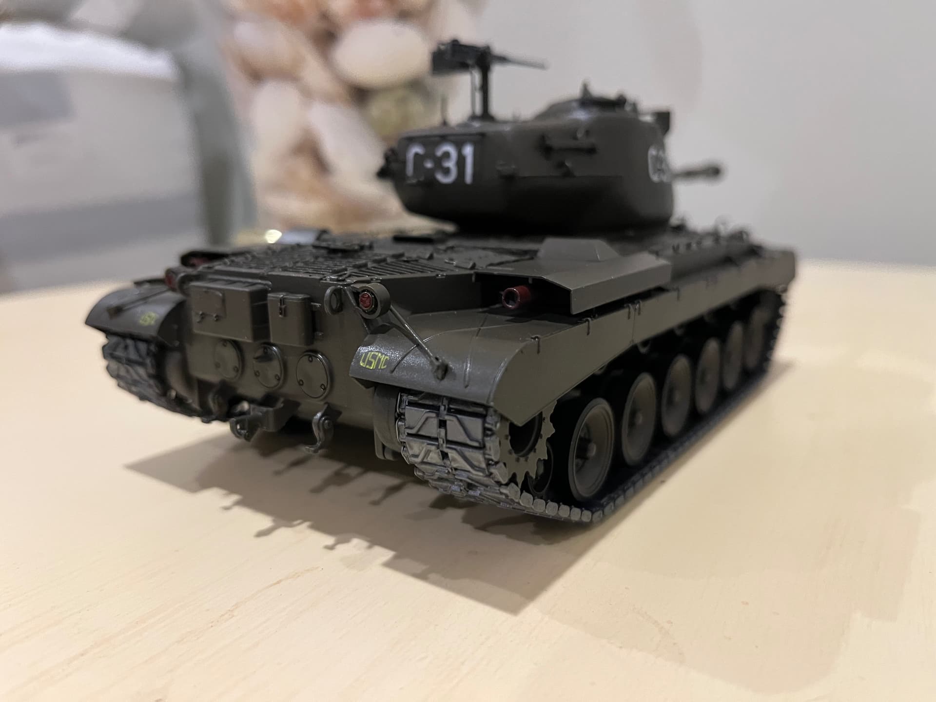 I finally got it finished earlier this week. The only thing that I am missing is the white hand painted Roman numeral 3 (3rd marines). I am going to try some white India ink in a 0 Rapidograph pen.