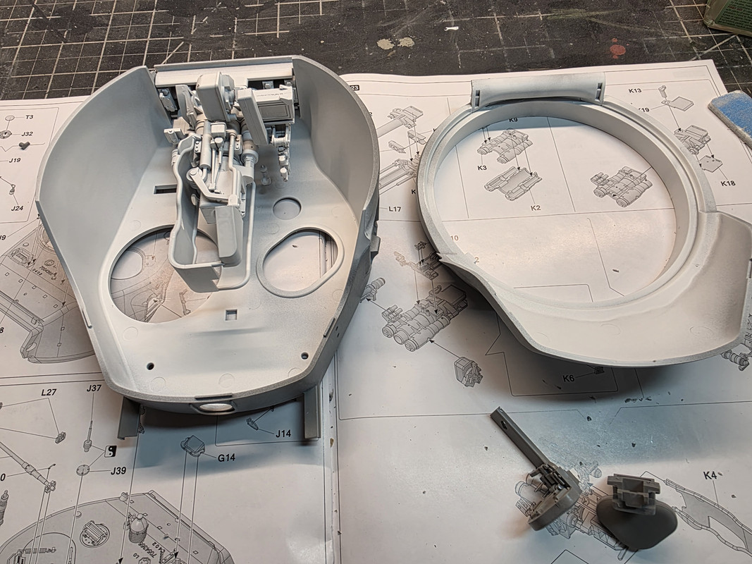 I the assembled turret interior,not much detail except for the gun.It will only be visable thru the commanders hatch.