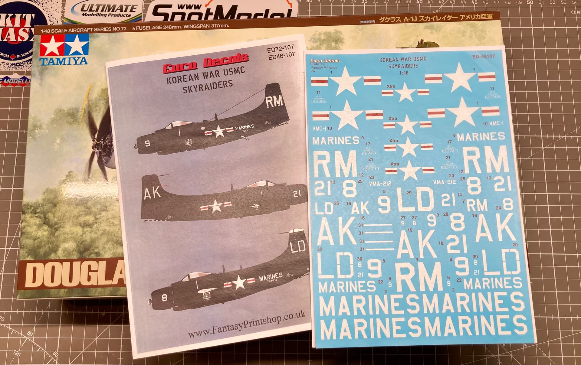 After I’m going to be done with the Audi, I found a Tamiya skyraider with Korean War USMS decals from Euro Decals.