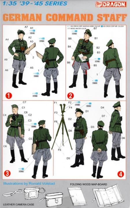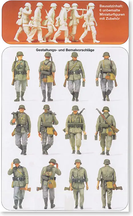 Only differences are the first Figure to the left in the first picture appearing to speak to someone we don’t see and the two additional figures in the second one to the right, which are apparently two Signal and Reconnaissance NCOs.