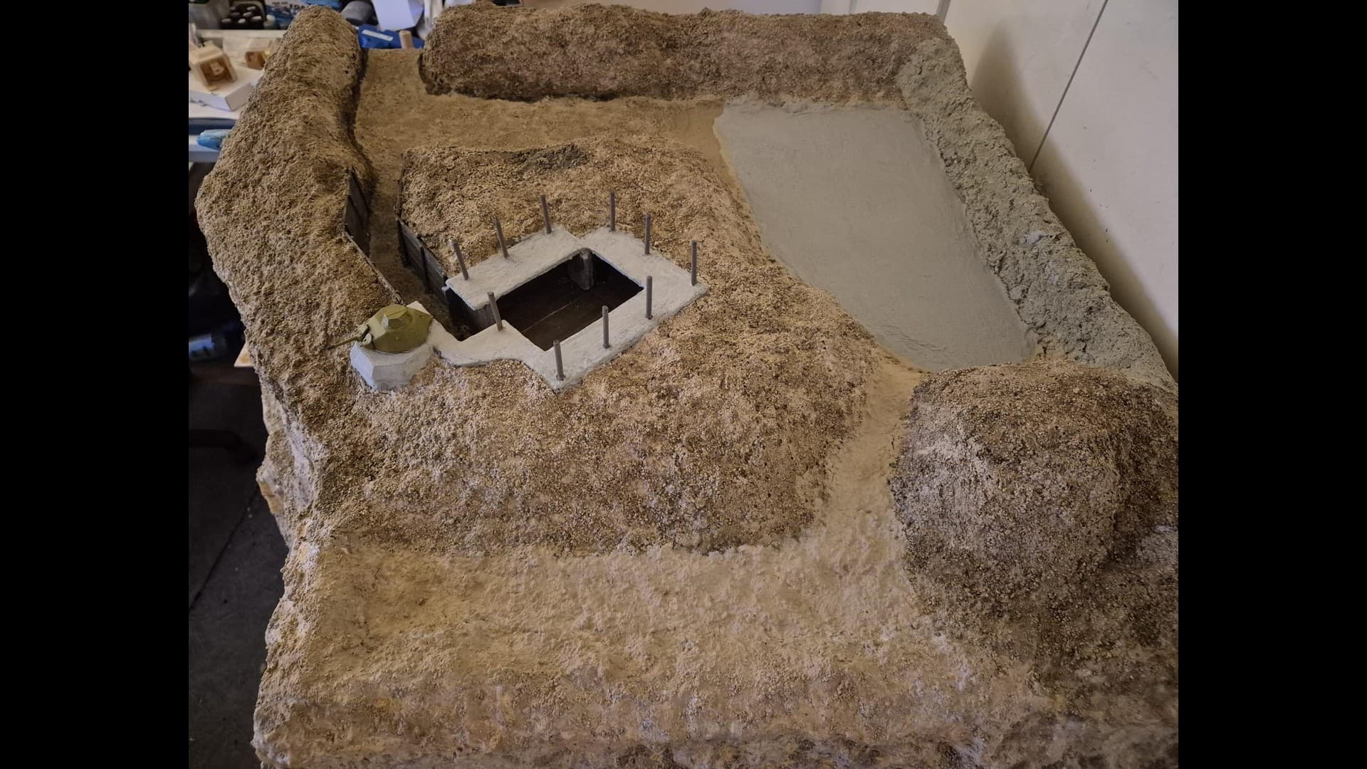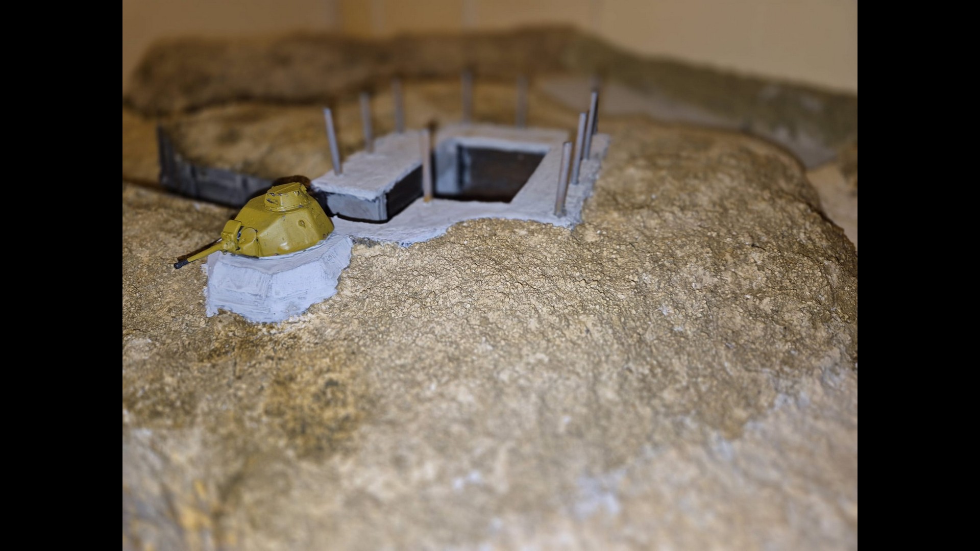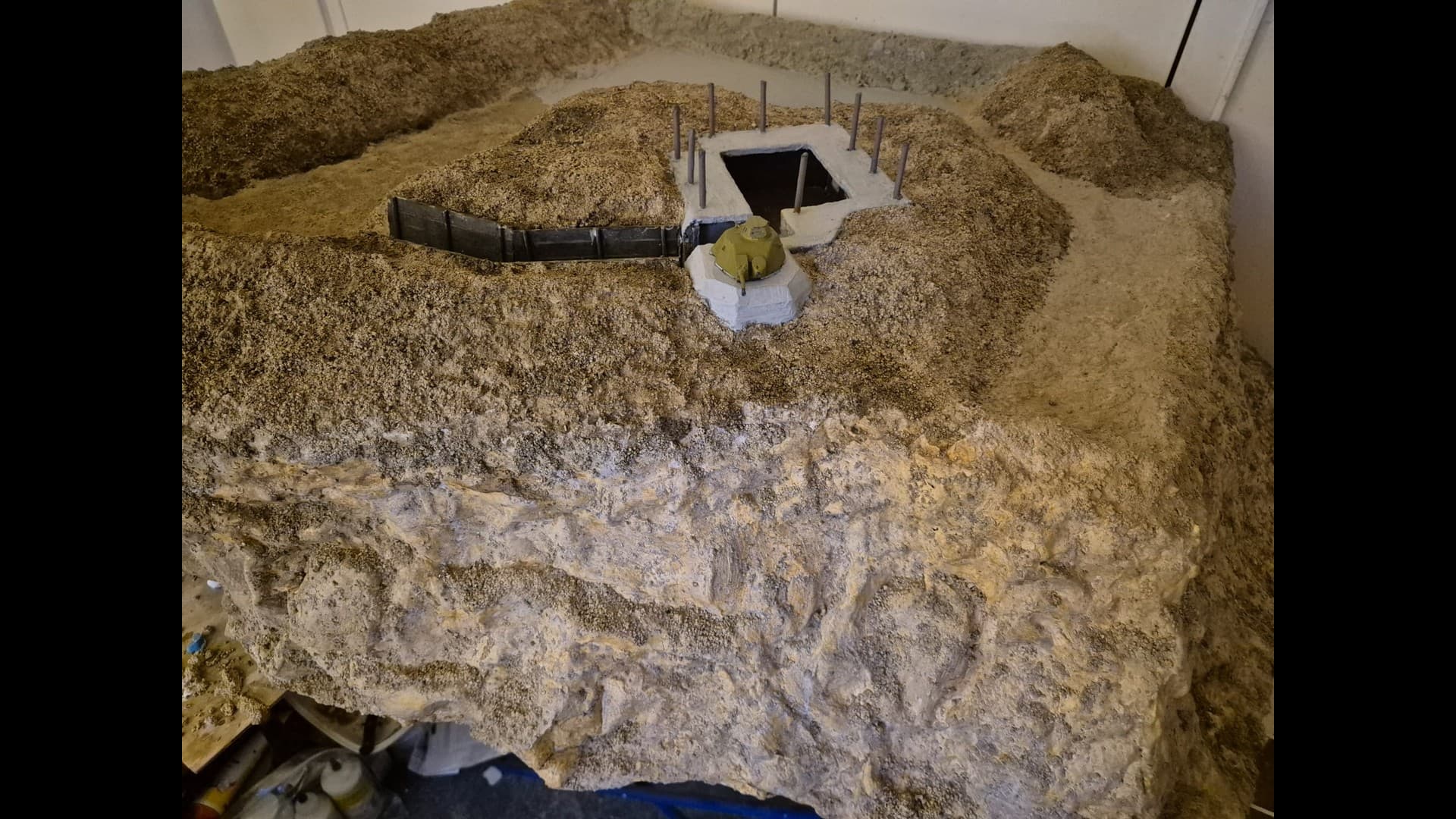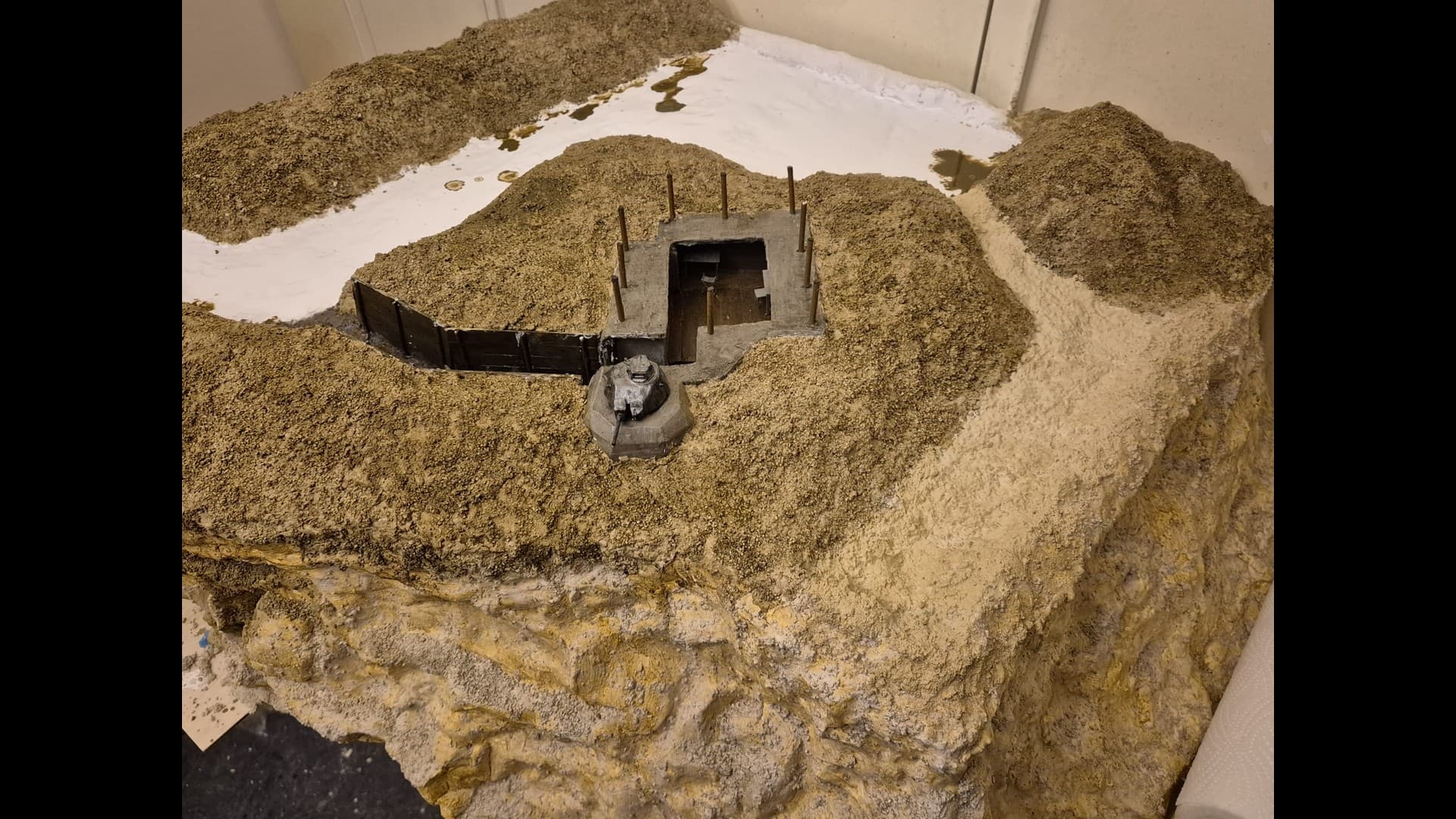 So let me start with part one which is the basic laying down of the first ground work and the further painting and weathering of the Bunker and tank turret.