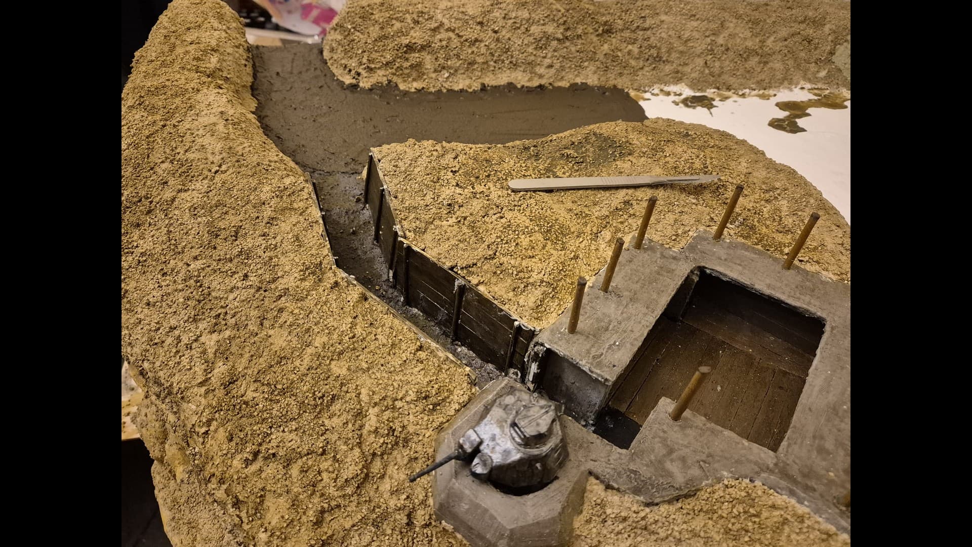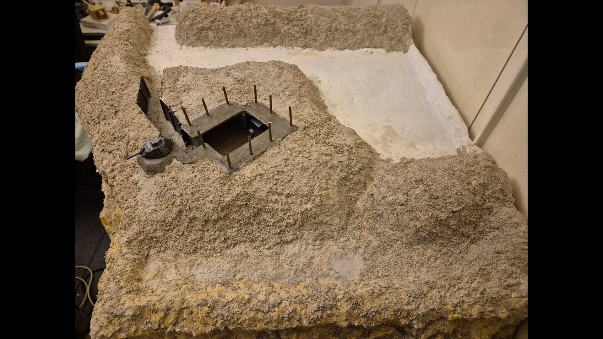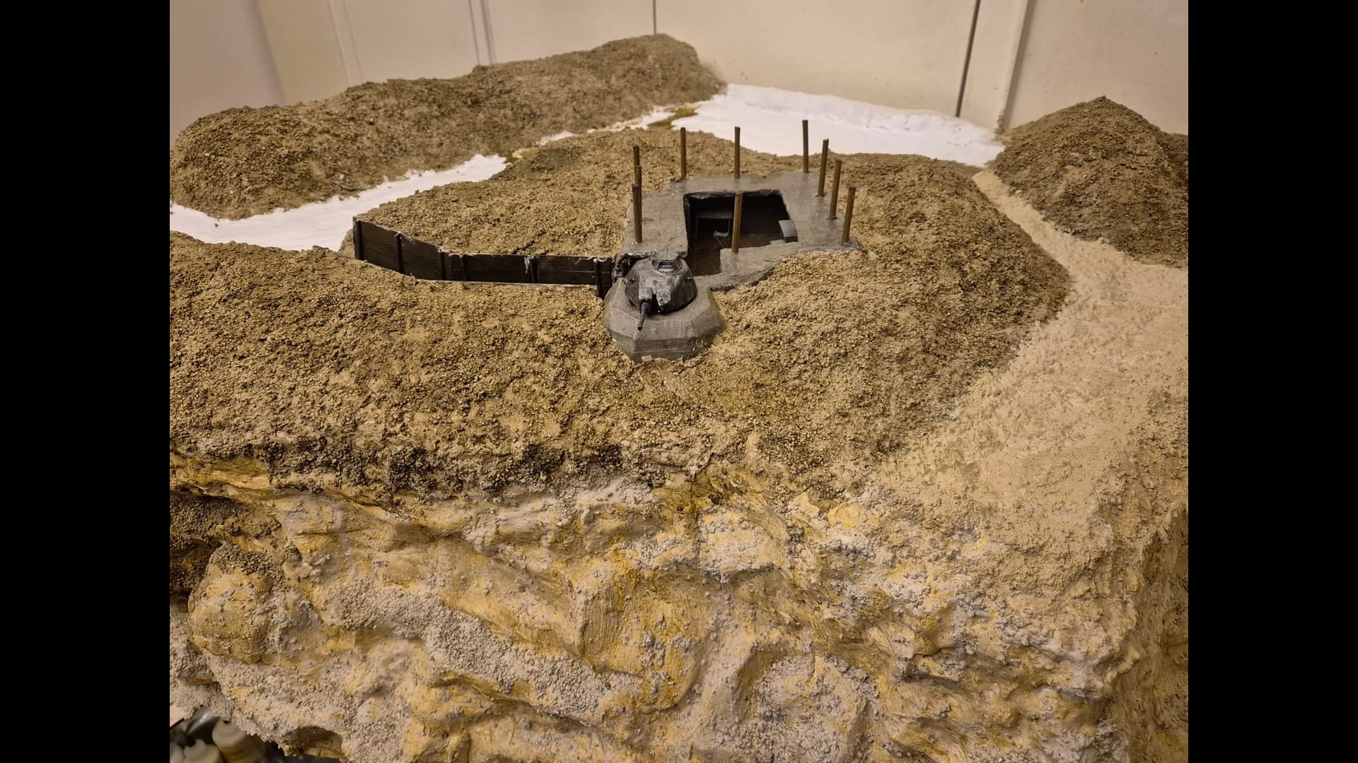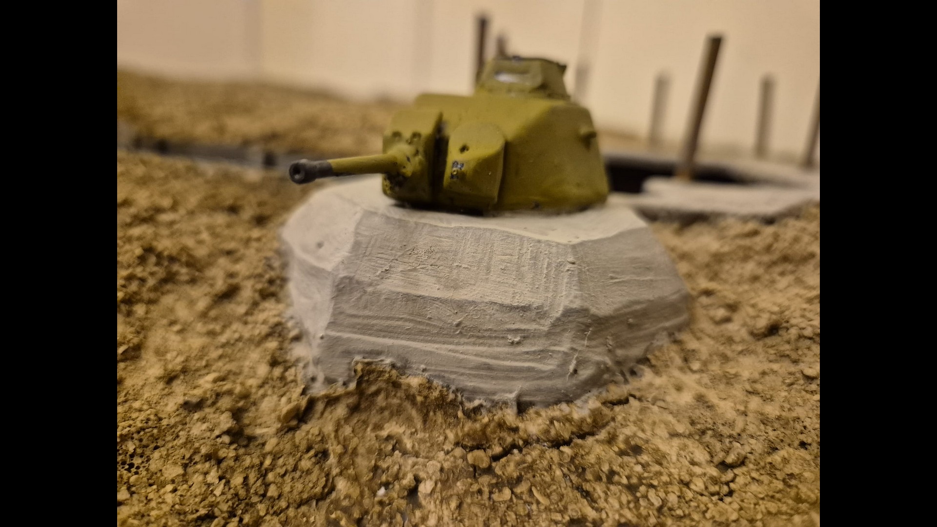So let me start with part one which is the basic laying down of the first ground work and the further painting and weathering of the Bunker and tank turret.