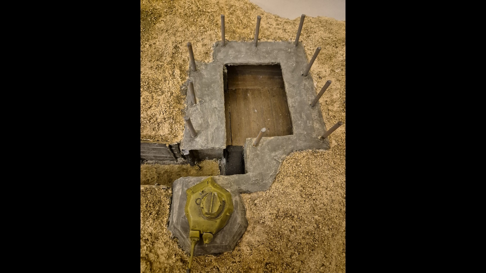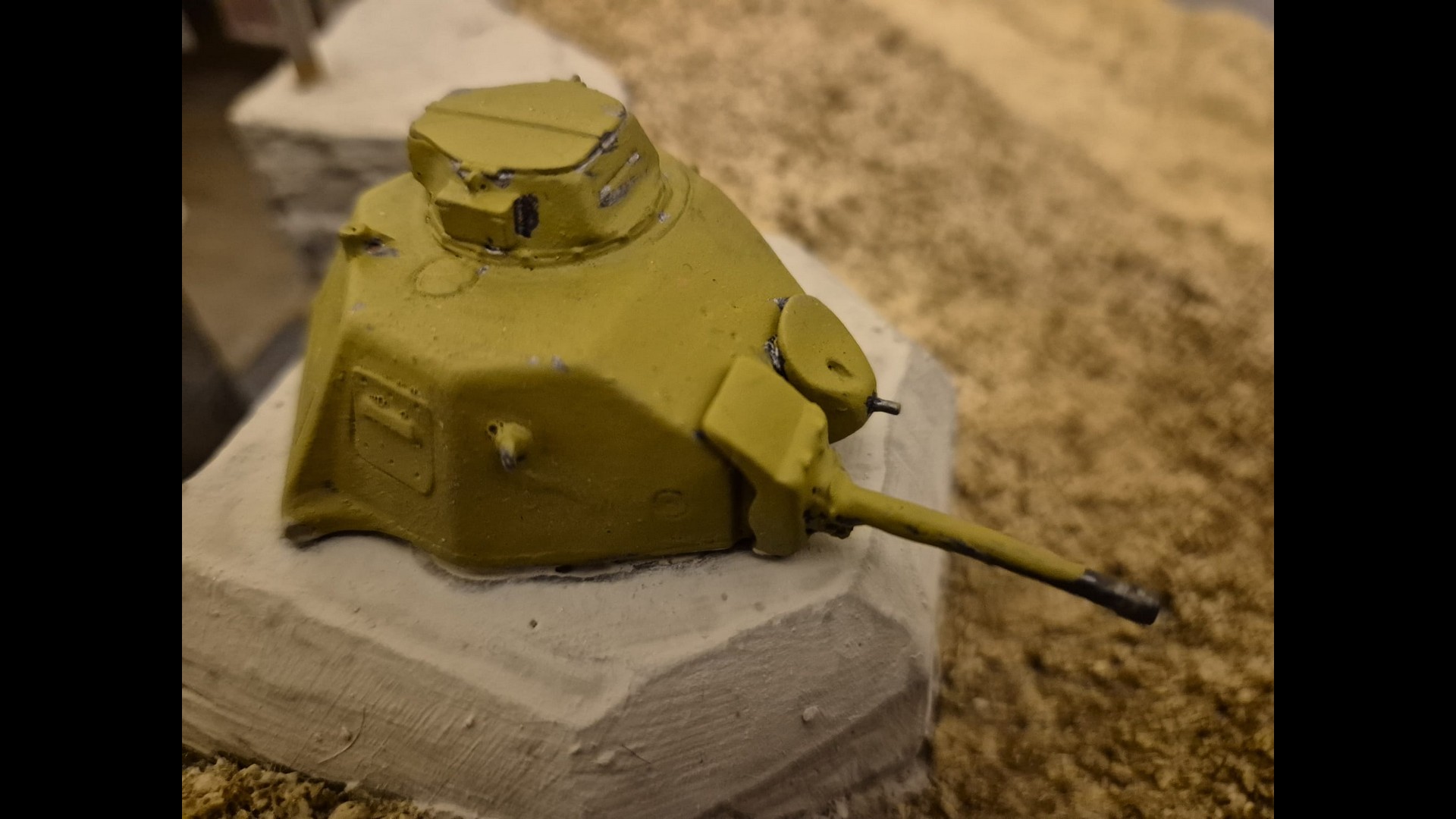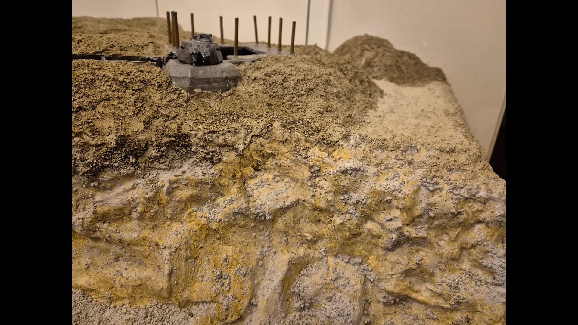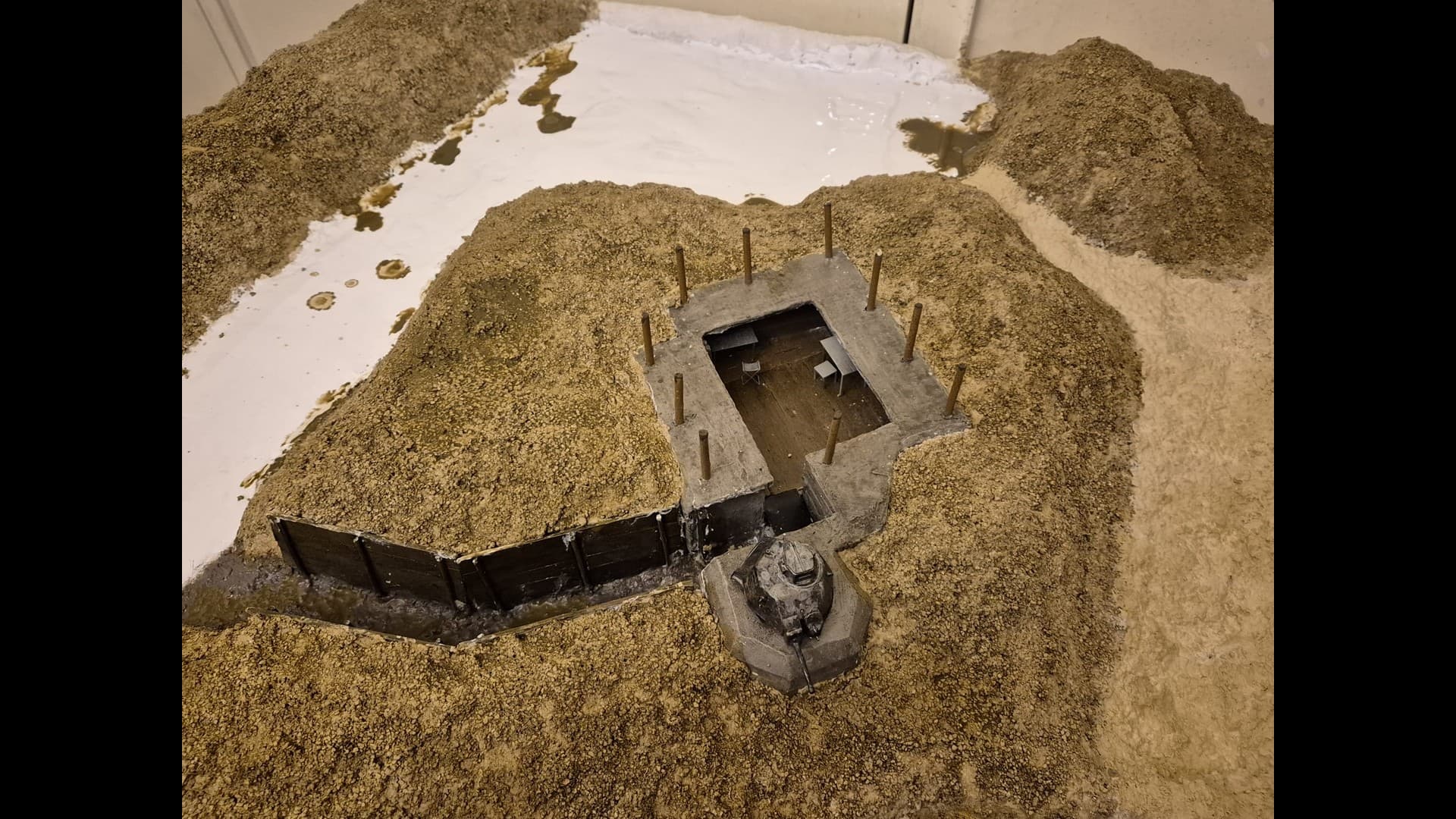 So let me start with part one which is the basic laying down of the first ground work and the further painting and weathering of the Bunker and tank turret.