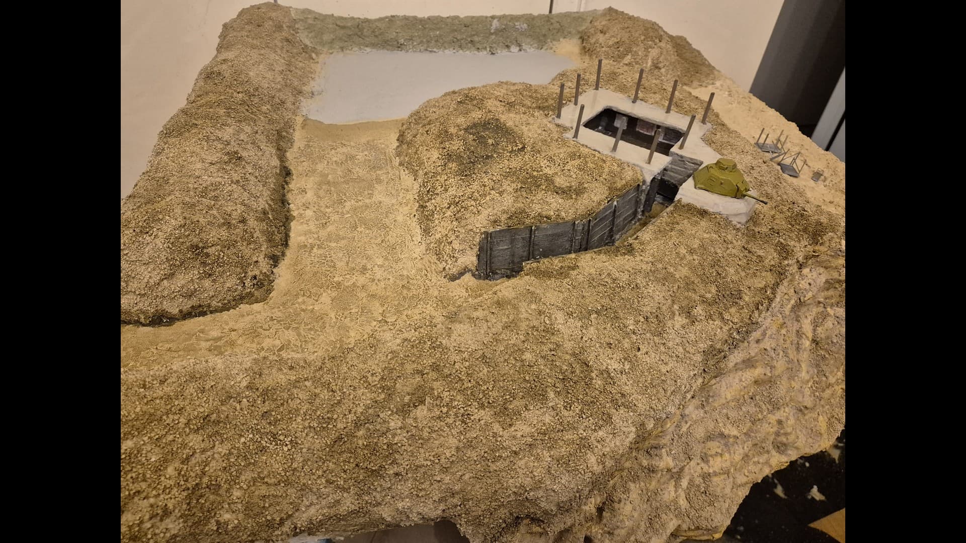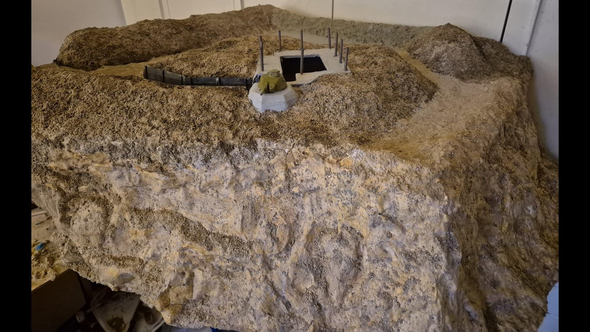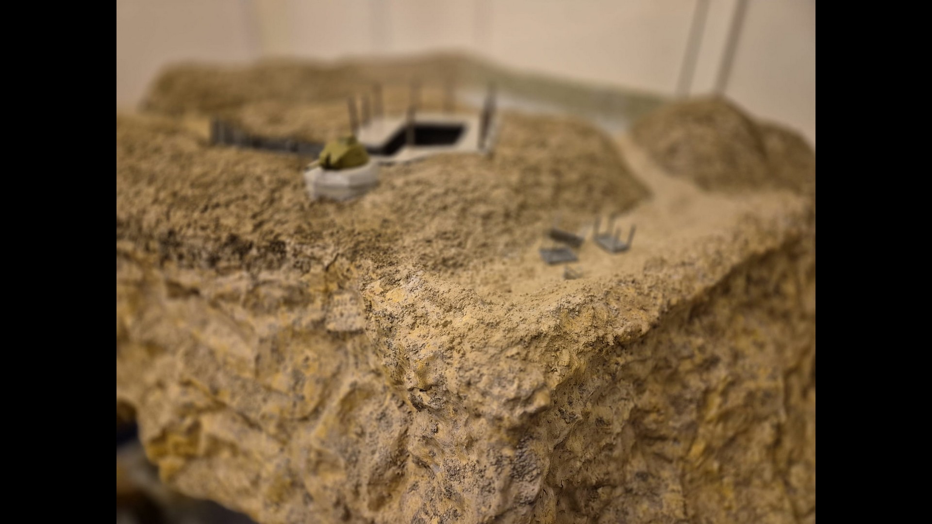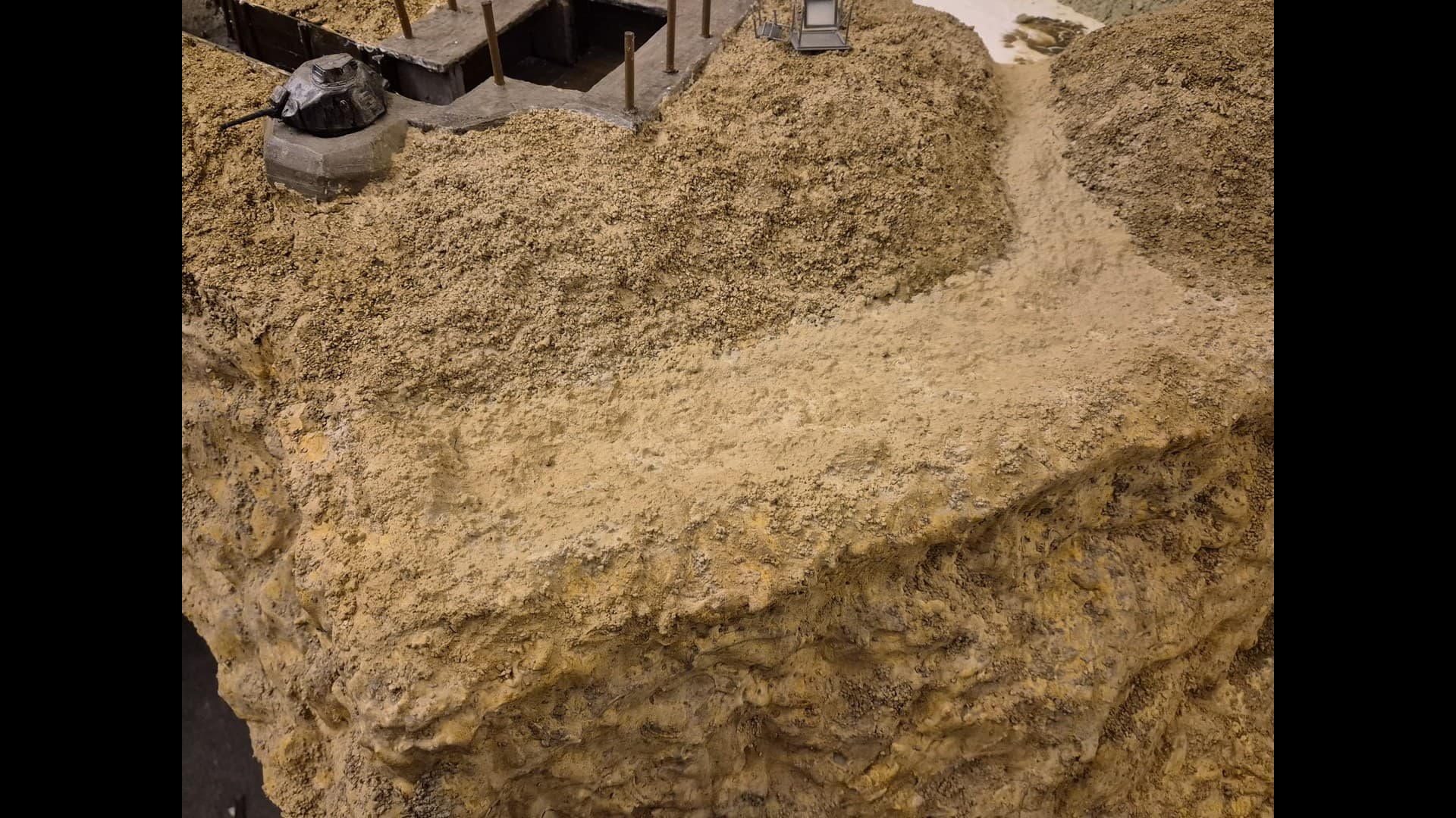 The other side of the cliff with the same material applied as well. Notice that the dunes, or terrain mounds have been somewhat elevated to more accurately depict the protection of the Bunker and its dissimulation in the terrain.