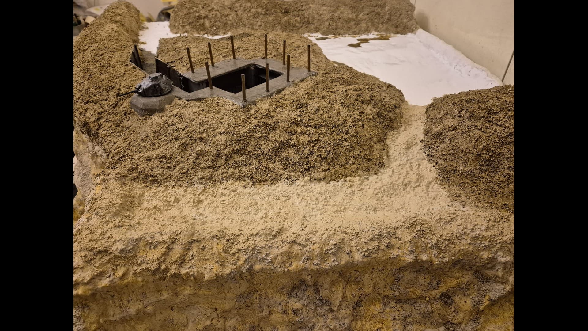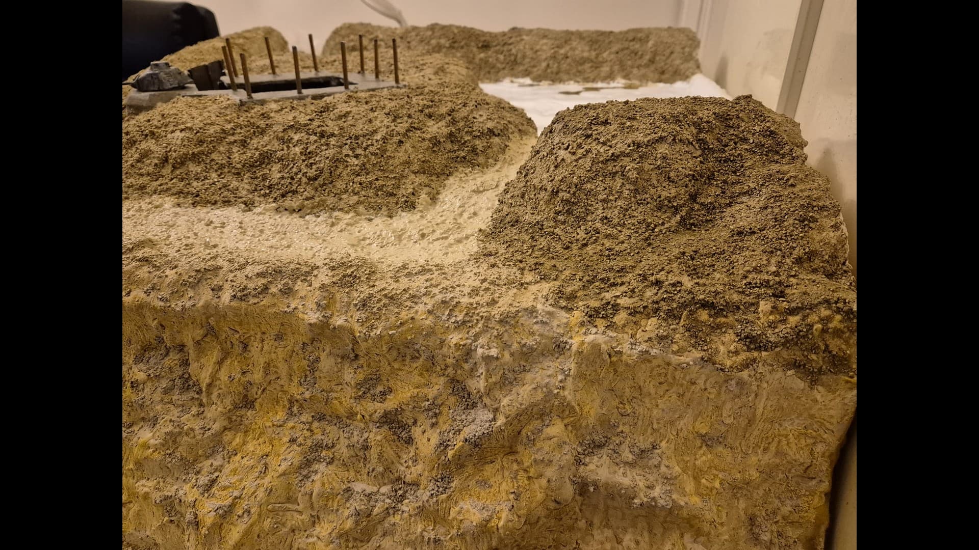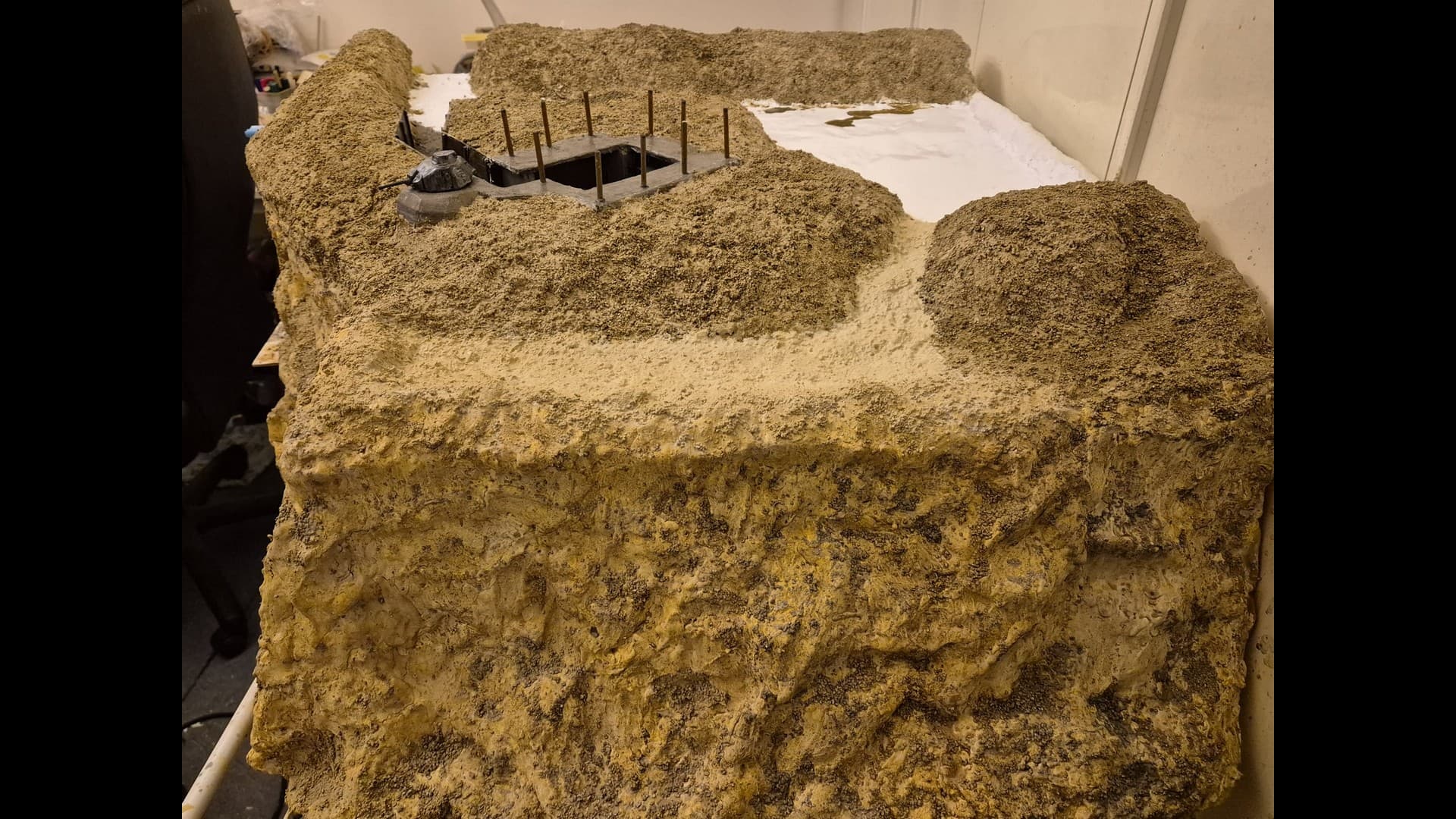 The other side of the cliff with the same material applied as well. Notice that the dunes, or terrain mounds have been somewhat elevated to more accurately depict the protection of the Bunker and its dissimulation in the terrain.