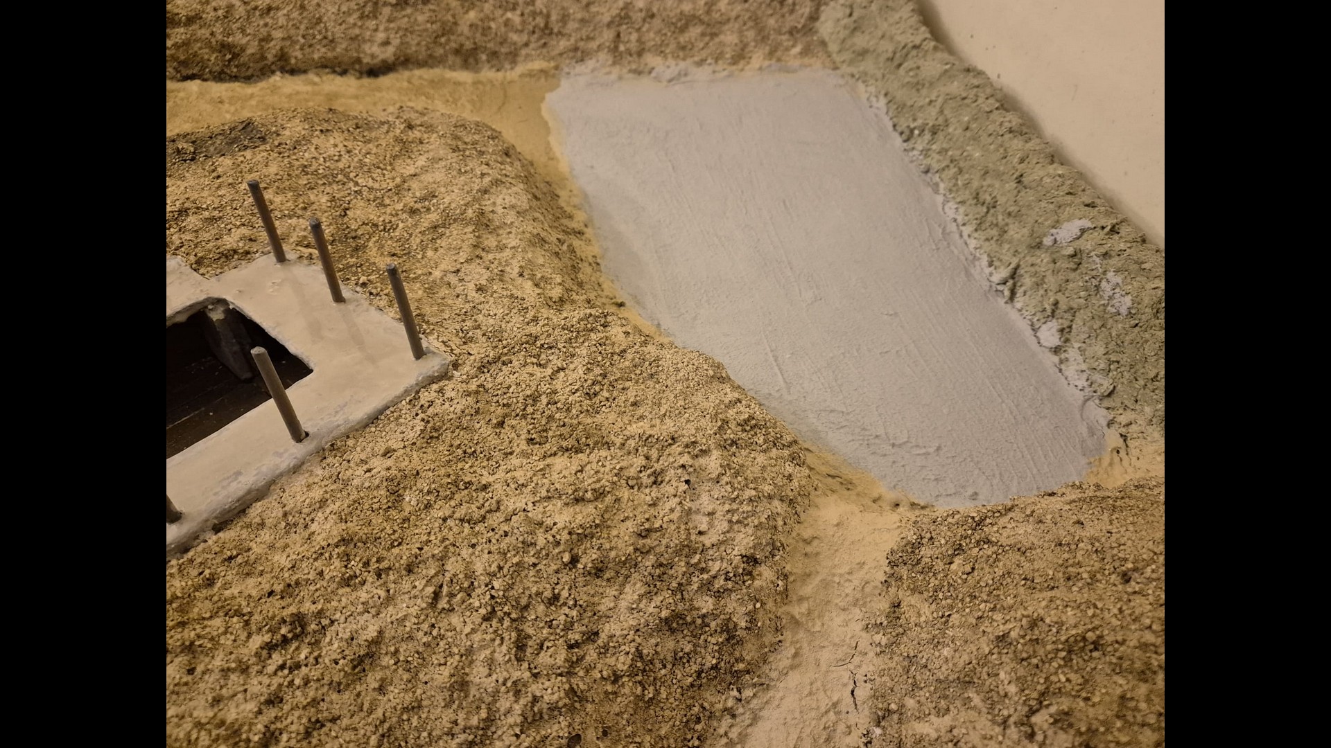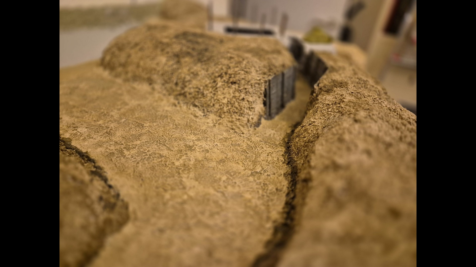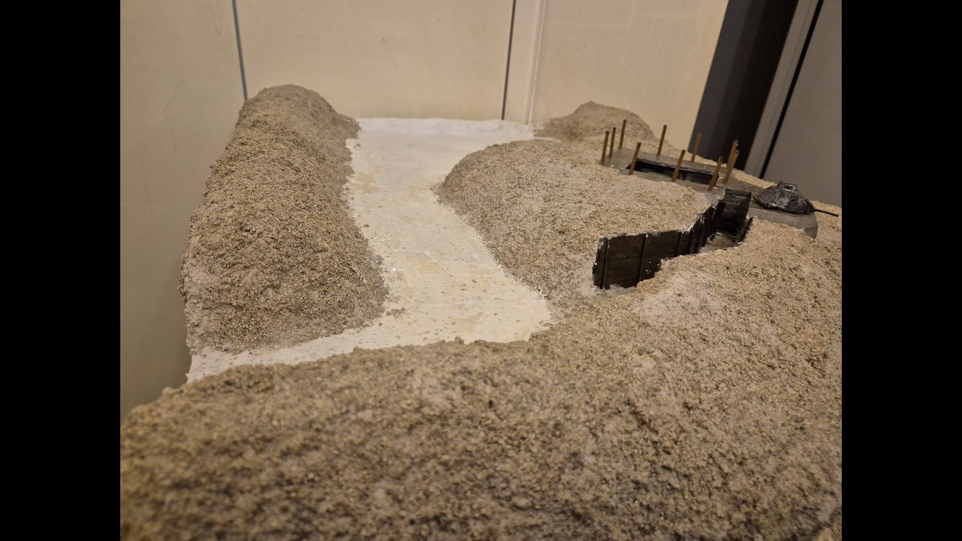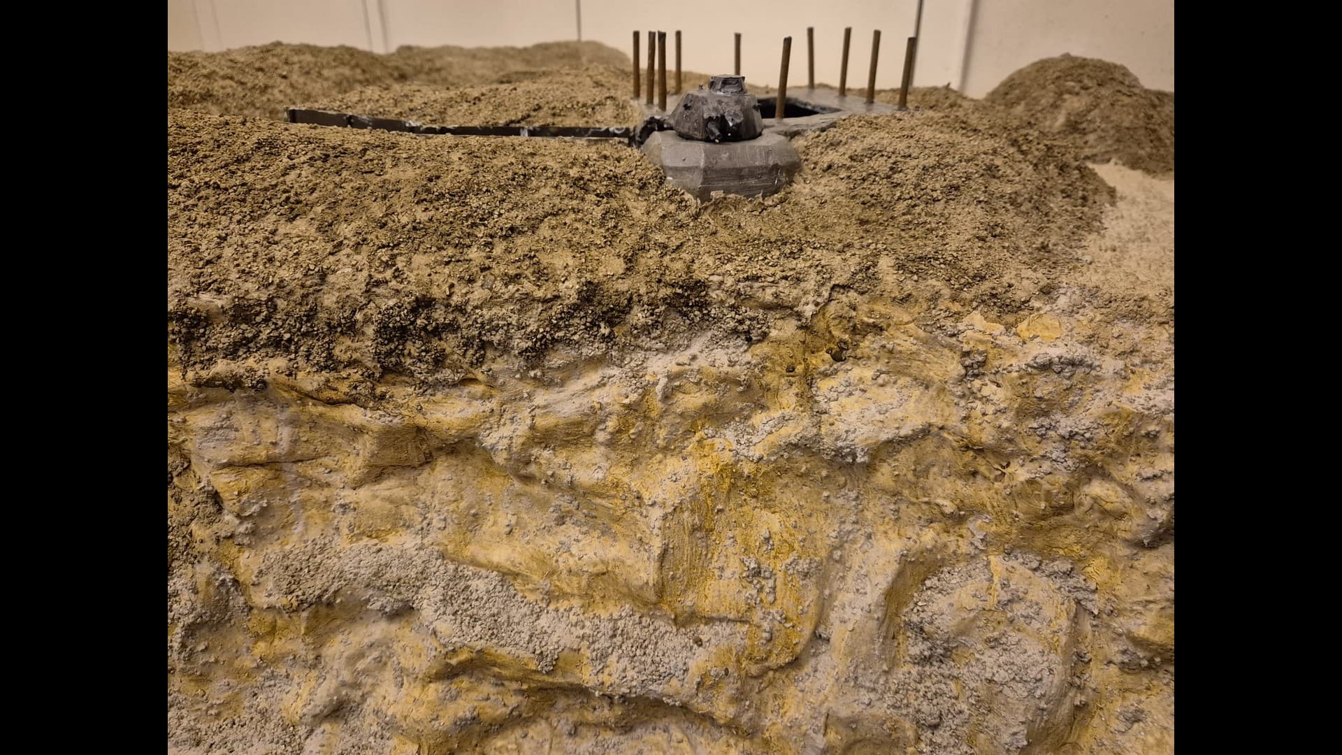 The other side of the cliff with the same material applied as well. Notice that the dunes, or terrain mounds have been somewhat elevated to more accurately depict the protection of the Bunker and its dissimulation in the terrain.