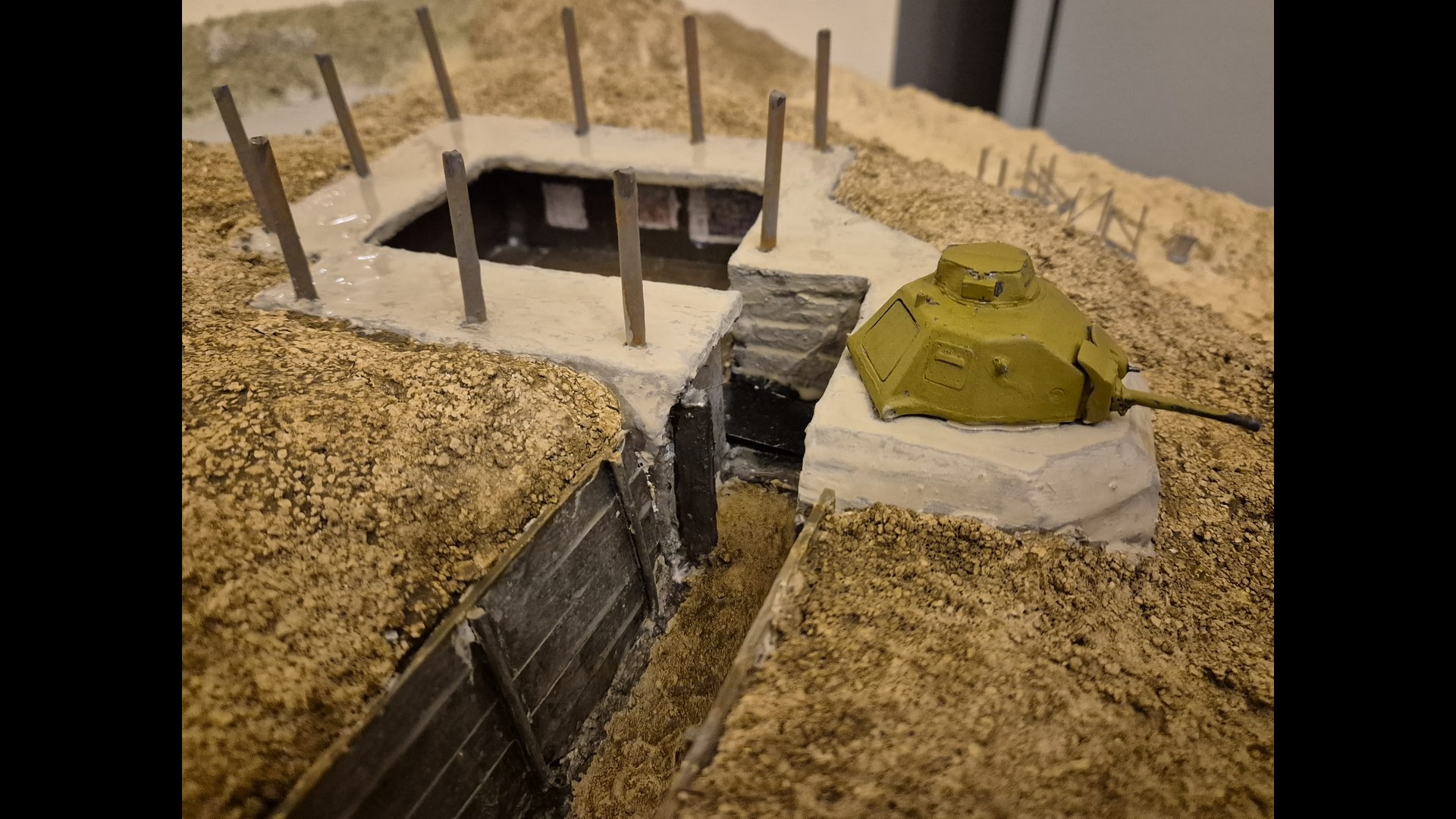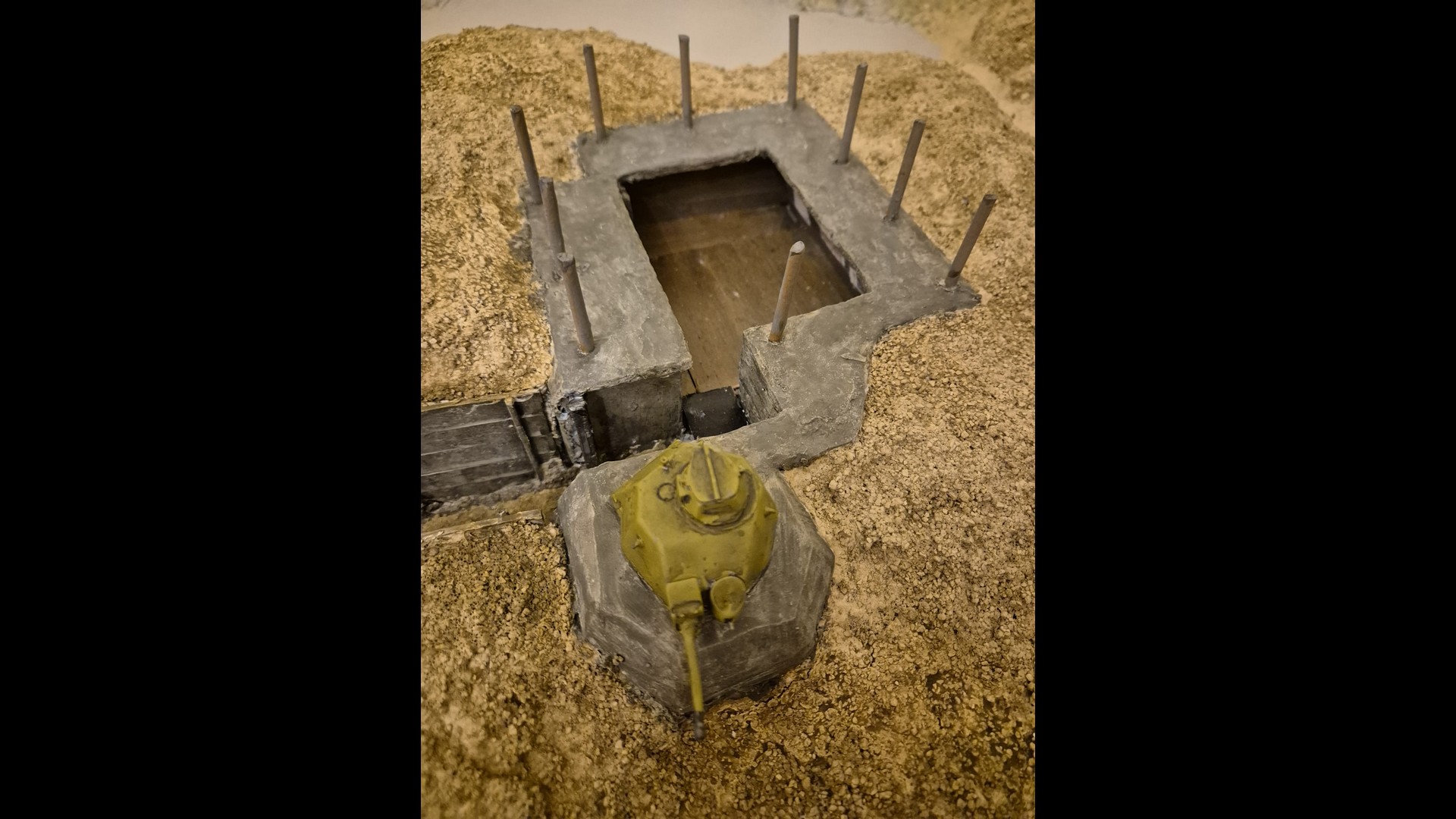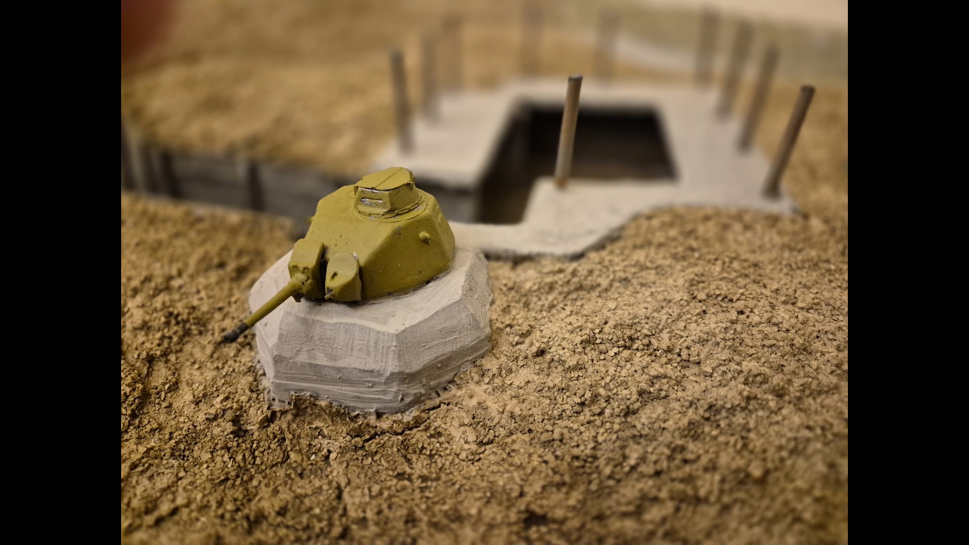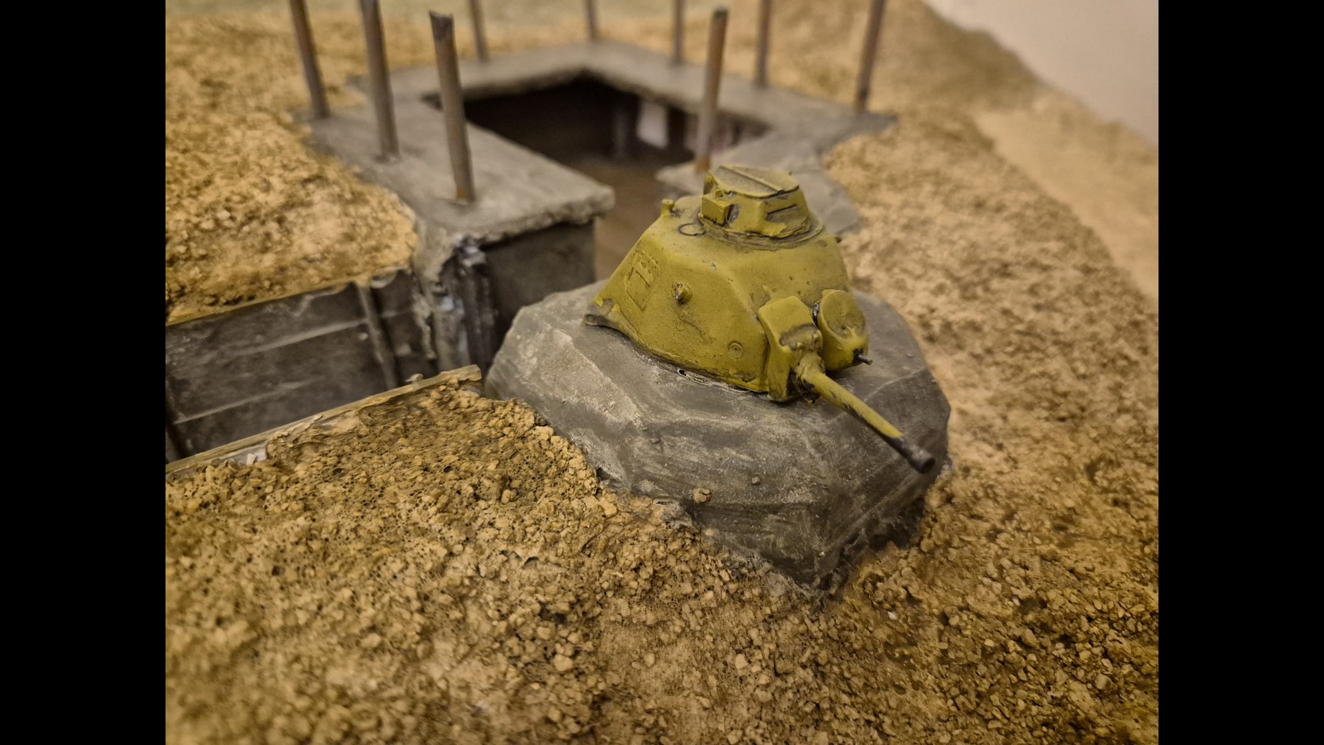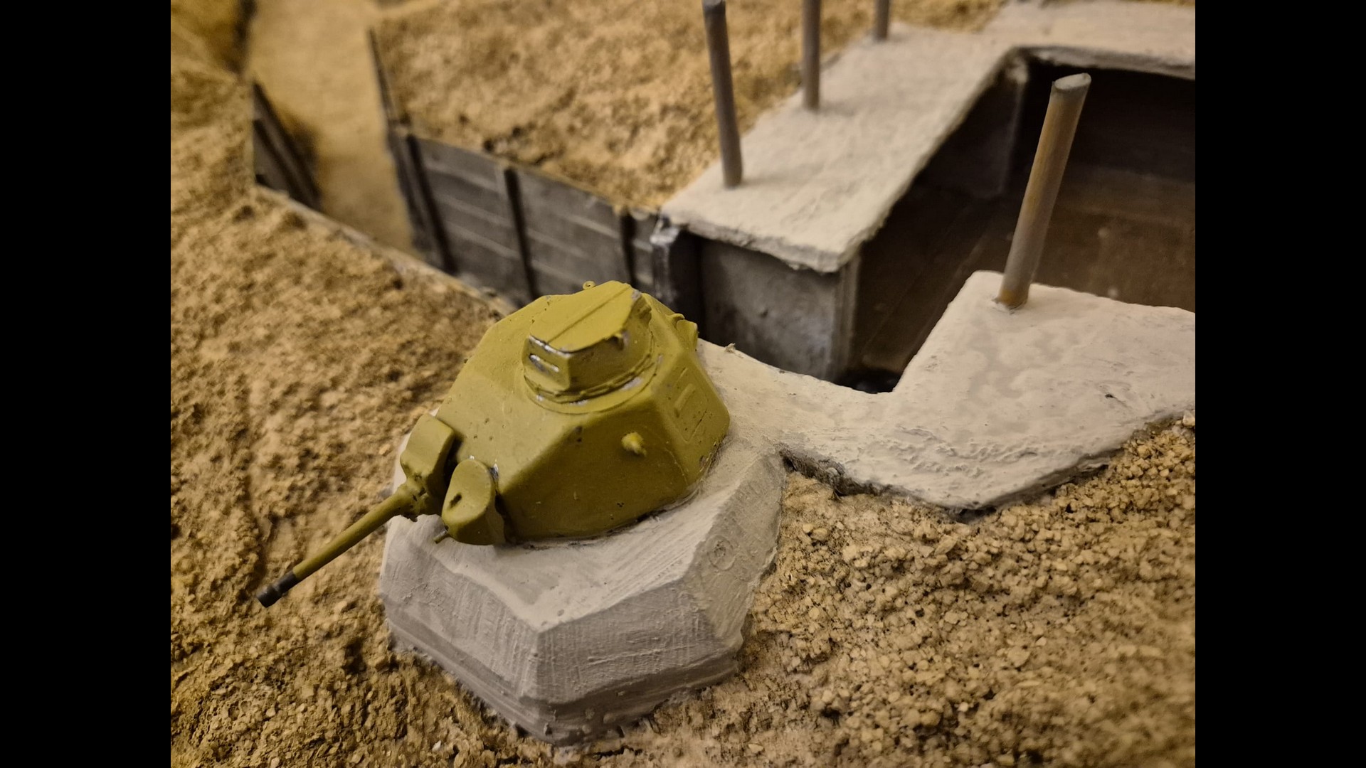 Here you can see the Tank turret fixed to the Tobruk emplacement more clearly. This though is only the first step to depict it.