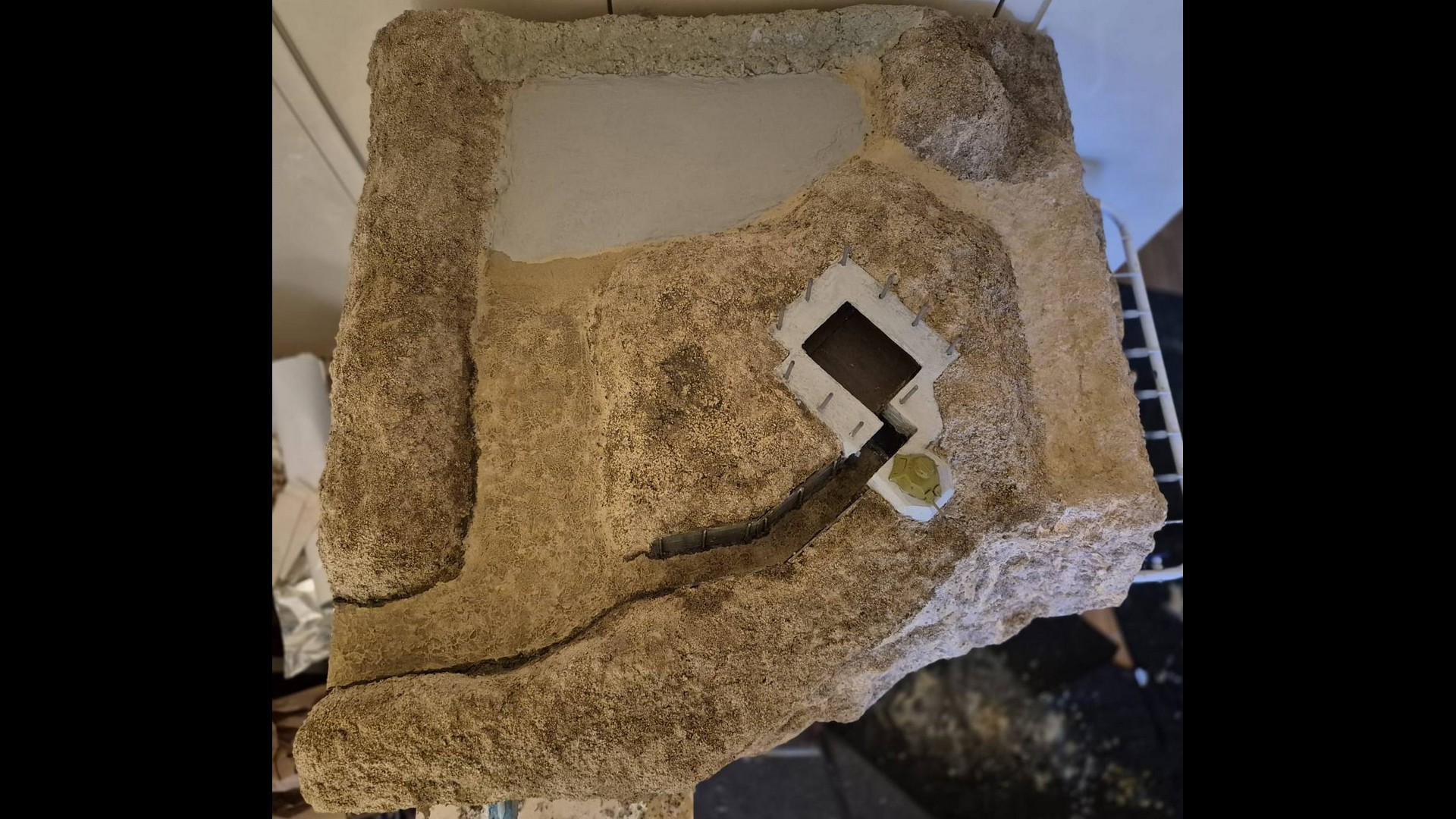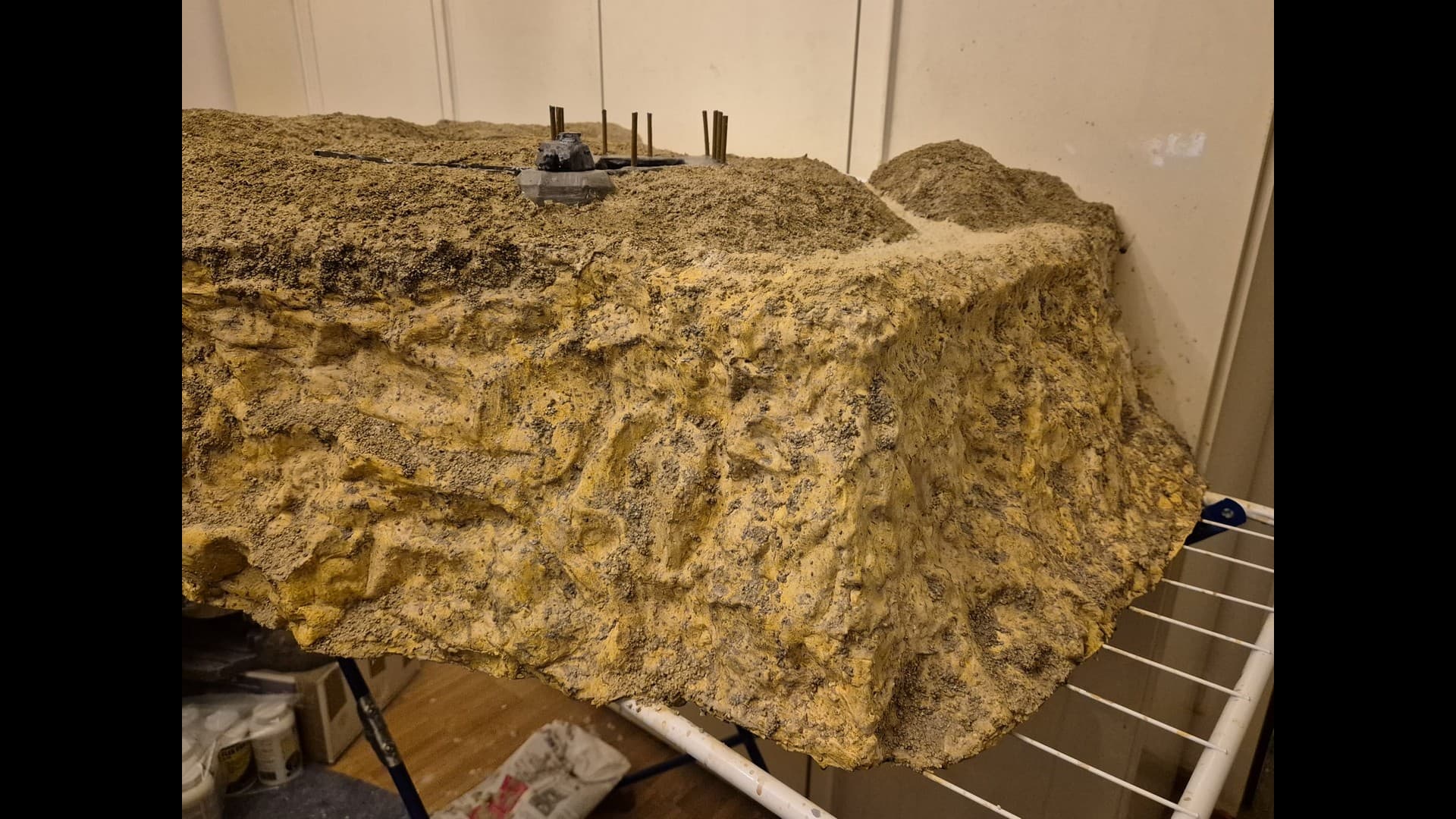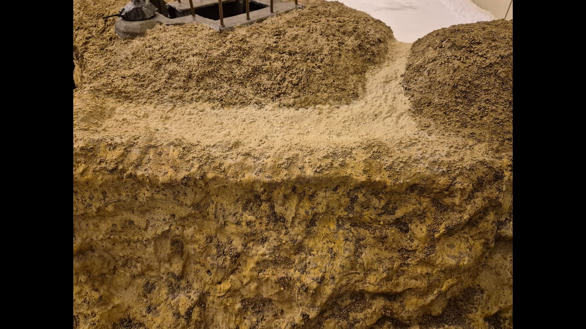 A further view of the side cliff encasing the Bunker. from a distance It appears that Mold-A-Scene plaster makes the dunes and the cliffs appear more uniform in shade and color.