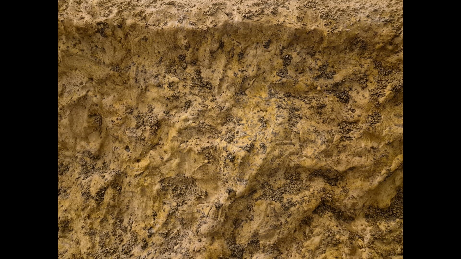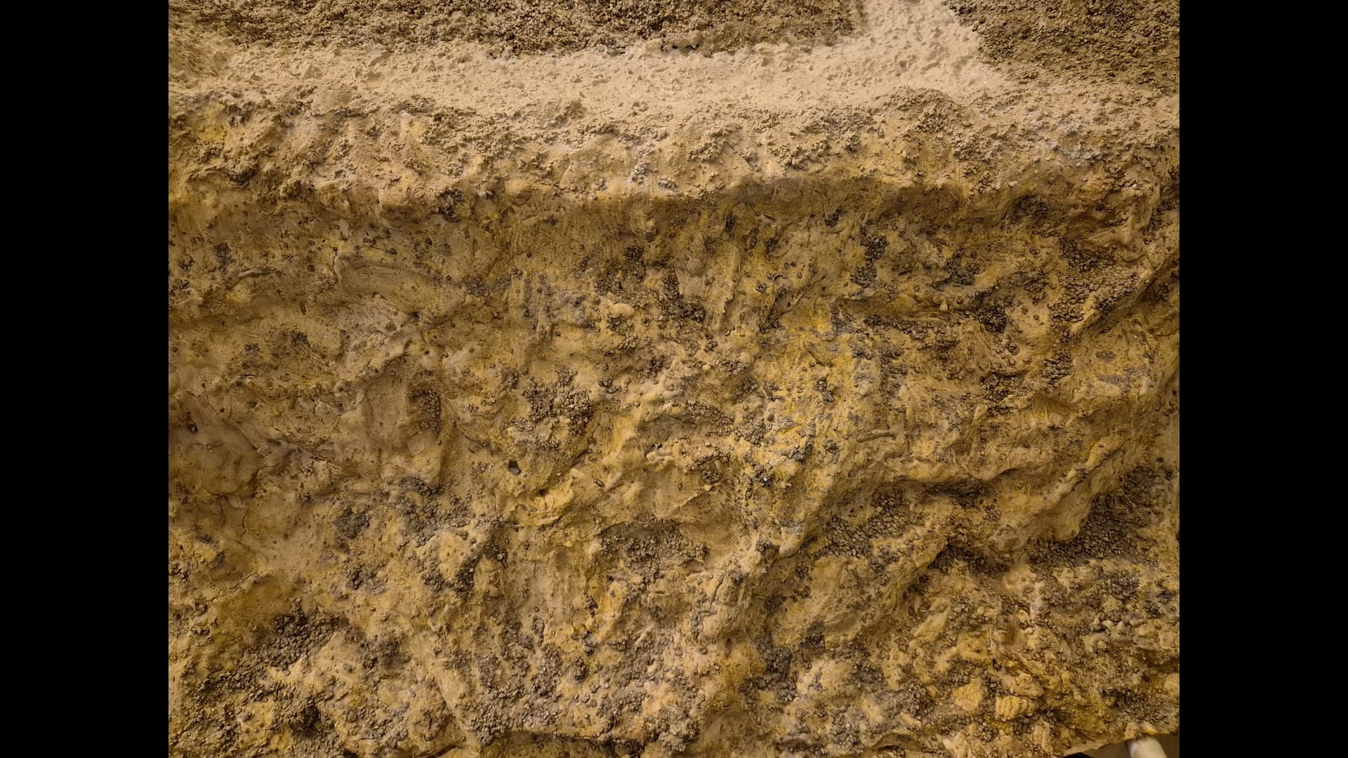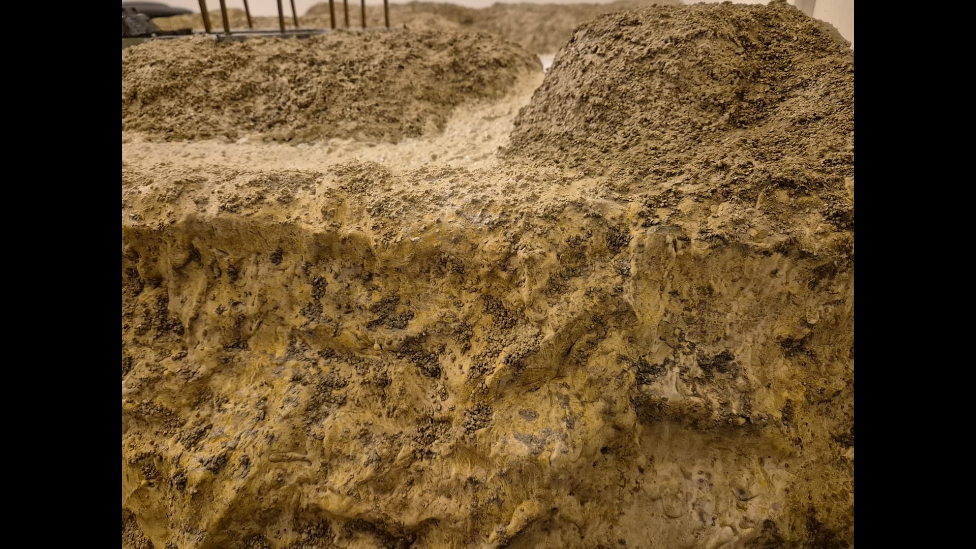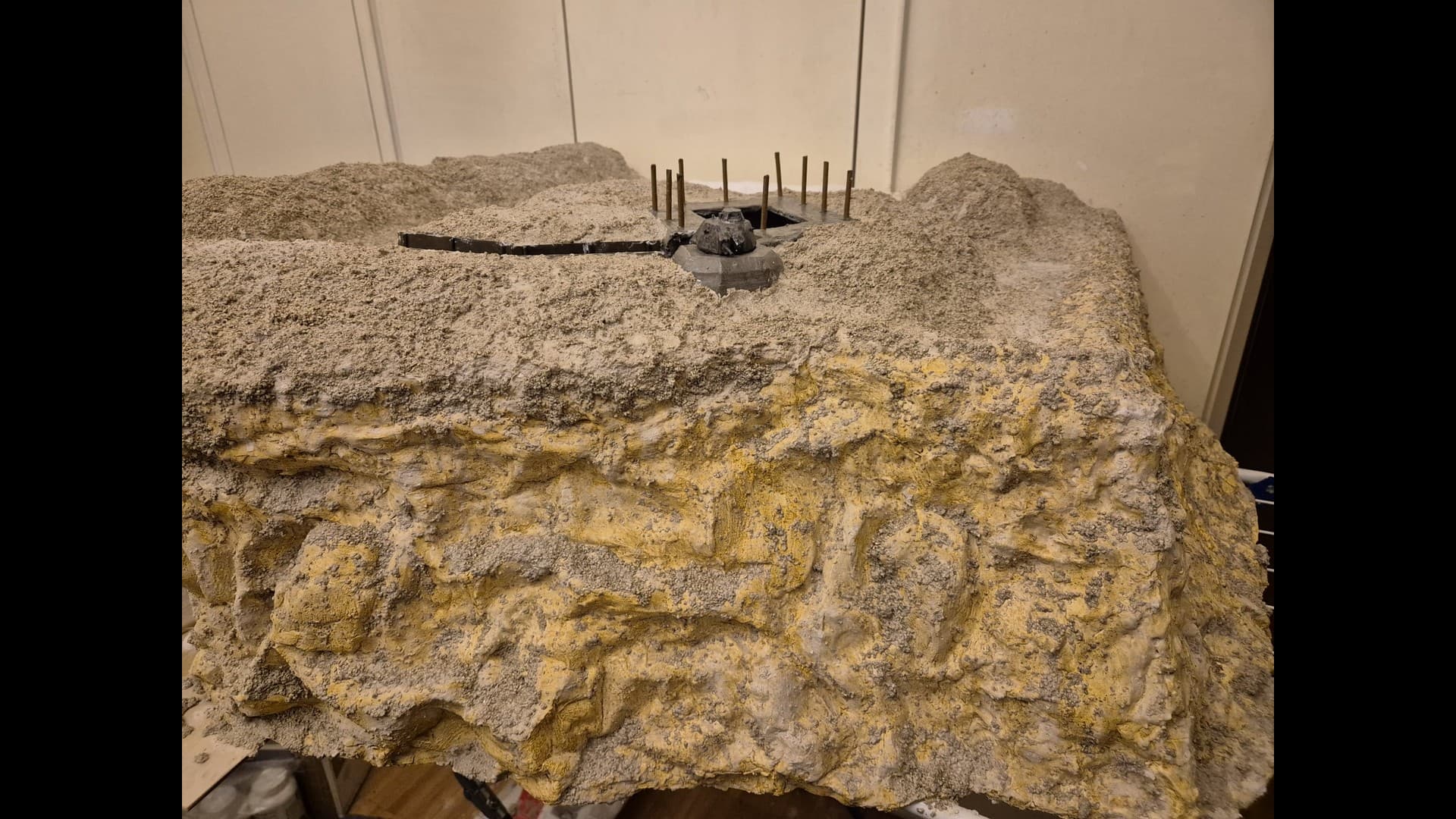 A further view of the side cliff encasing the Bunker. from a distance It appears that Mold-A-Scene plaster makes the dunes and the cliffs appear more uniform in shade and color.