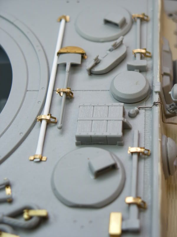 I envy your PE work, outstanding! I canāt even see those little pieces, no less bend and glue them. Does the light bracket get zimmed also? And did you scratch those parts (gun cleaning rods and pry bar?) or AM? Again, great work!