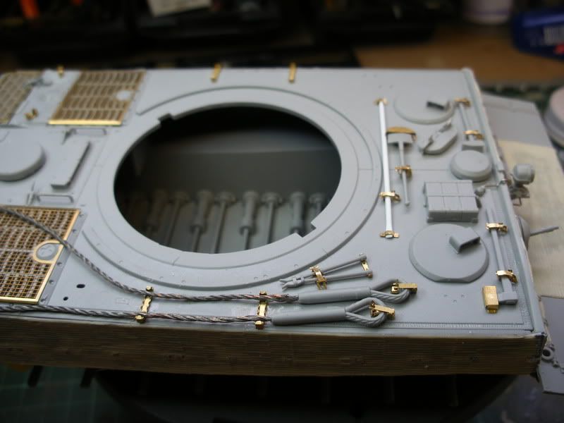 [:O] DRAGON PUT ZIMMERIT ON THE FRONT HULL PLATE! Oh no! o well you could always sand it off. looks great so far I did this same kit a couple of months ago. Your amazing with PE! I tried their PE tool brackets and got frustrated and used the plastic ones instead. I did the old fashioned screw driver nā putty method for my zim.