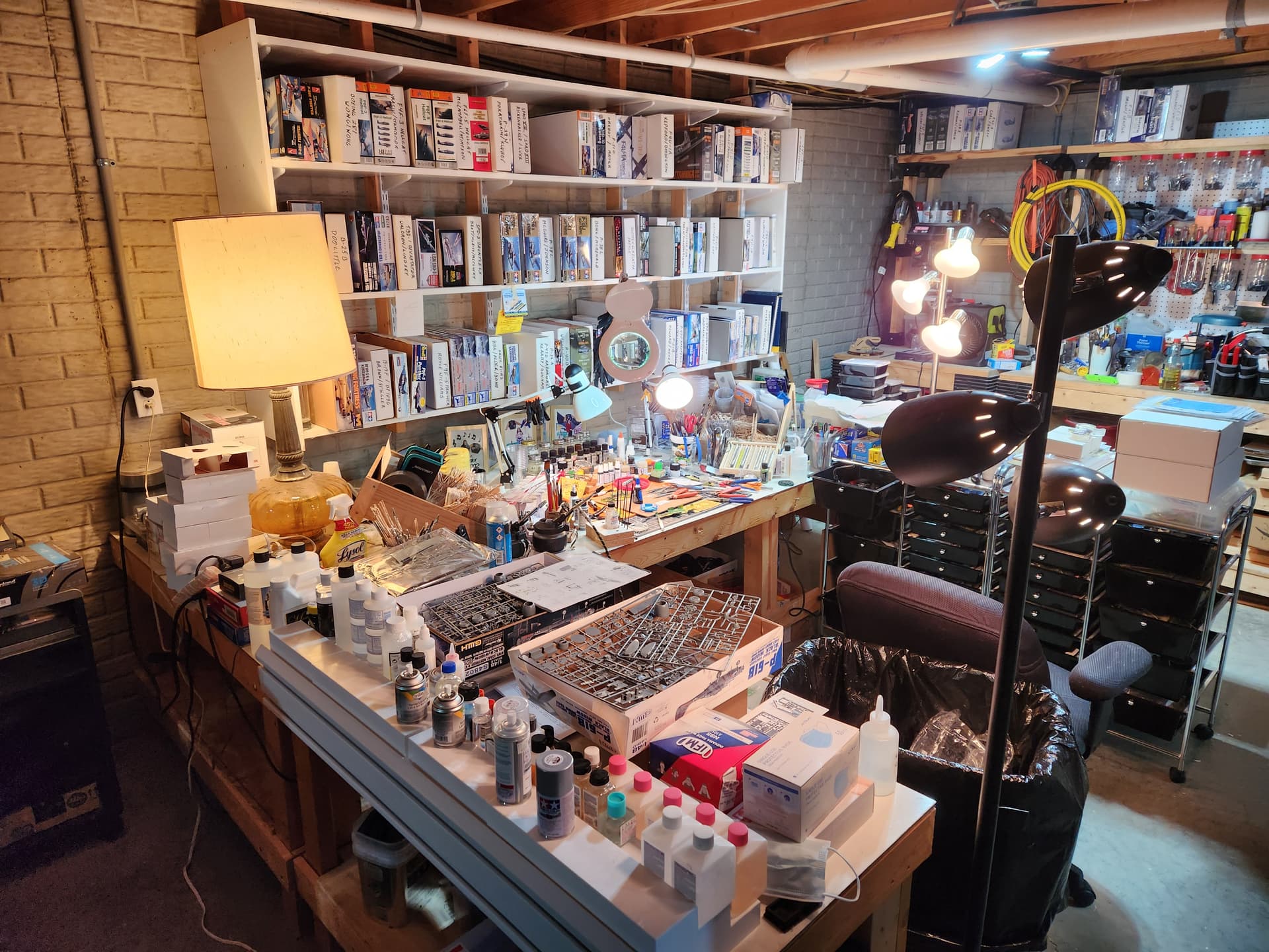 You need light to work, lots and lots of lights. You’ll never have enough. Her is my workspace.