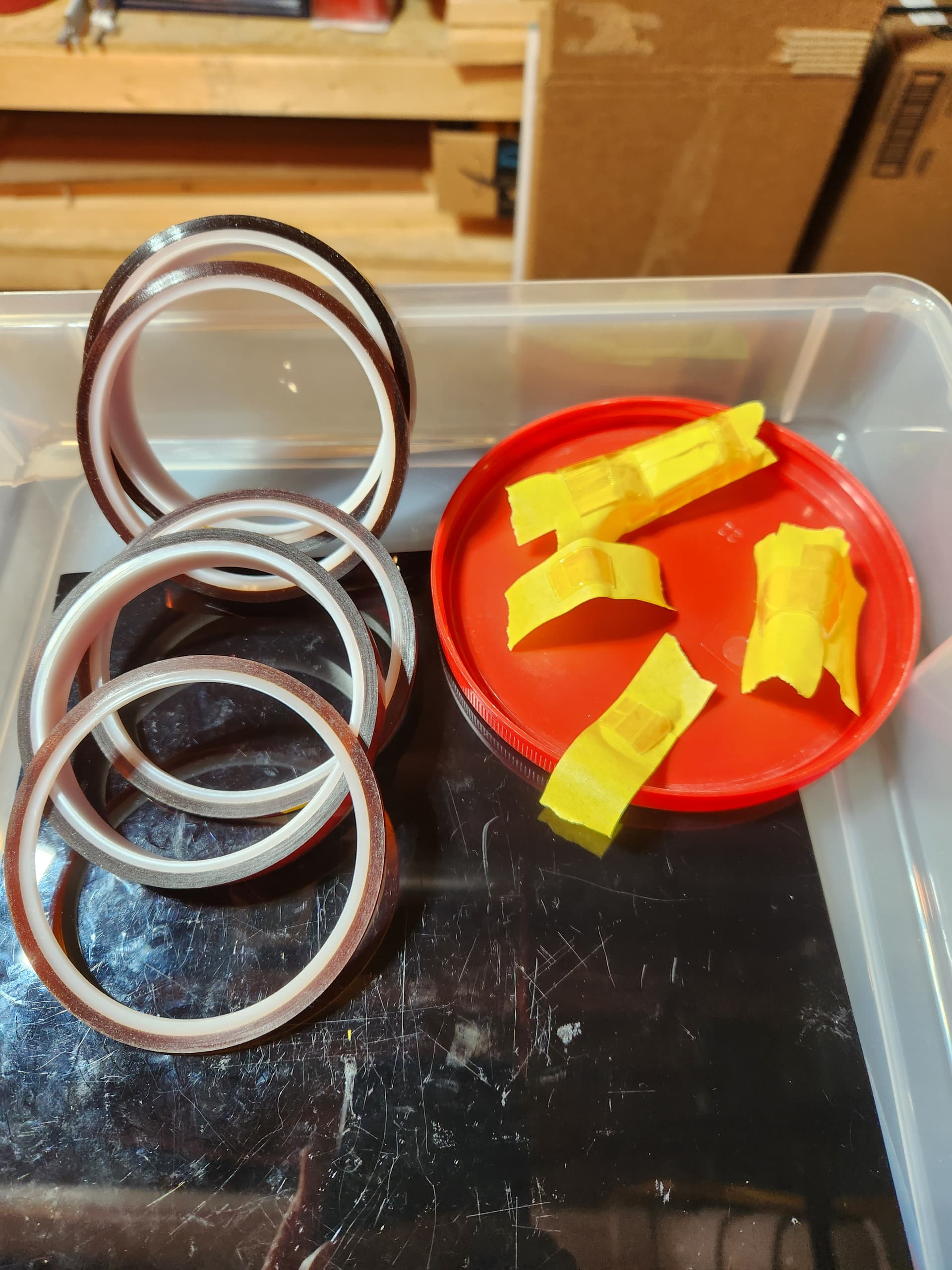 Finally, I got a suggestion on YouTube. It’s a tape called: “Selizo High Temp Tape, 5 Pack Multi – Sized 1/8”, 15/64”, 15/64”, 15/32”, 5/64”, Heat Resistance Up to 280℃ (536℉)” on Amazon. It sticks when you want it to, pulls off with out a problem and paint doesn’t seem to get undr it. Here’s what it looks like.