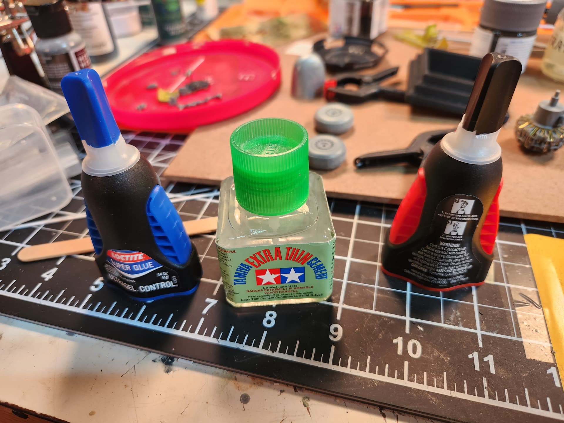 Remember, superglue will not stick to superglue so if you have a superglue fail you have to scrape it off to make a clean gluing surface. Also, superglue won’t stick to the type of plastic used on Coffeemate container lids and margarine container lids. You can squeeze a little superglue on to a piece of plastic like that, close up the lid on your superglue container and then use a toothpick to apply it where it needs to go. This will keep your superglue from drying in the container.