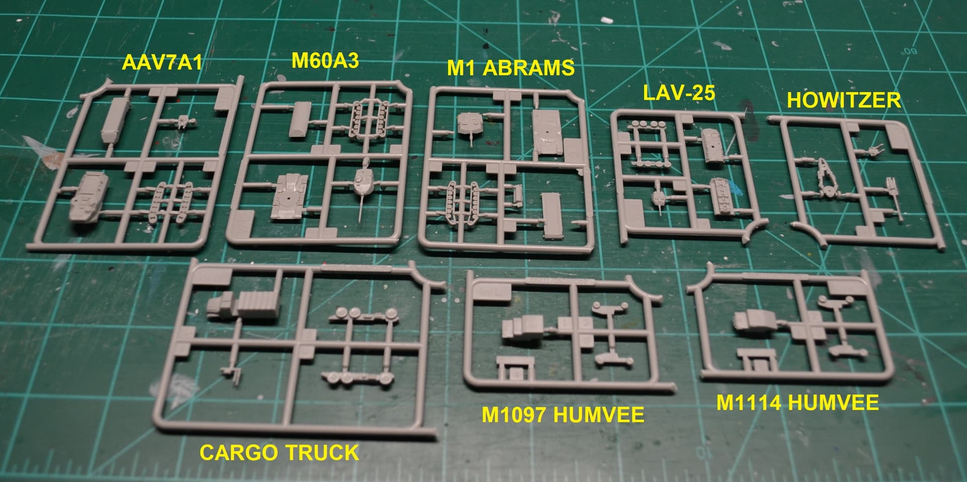 A long, long time ago, I bought a 1/350 scale USS Wasp and a USS San Diego amphibious ships. Both ship kits came with plenty of US Marine armor vehicles and aircraft. But I also long ago bought extra packages of MRC US Marines Armor Accessories and US Marines Aircraft Accessories.