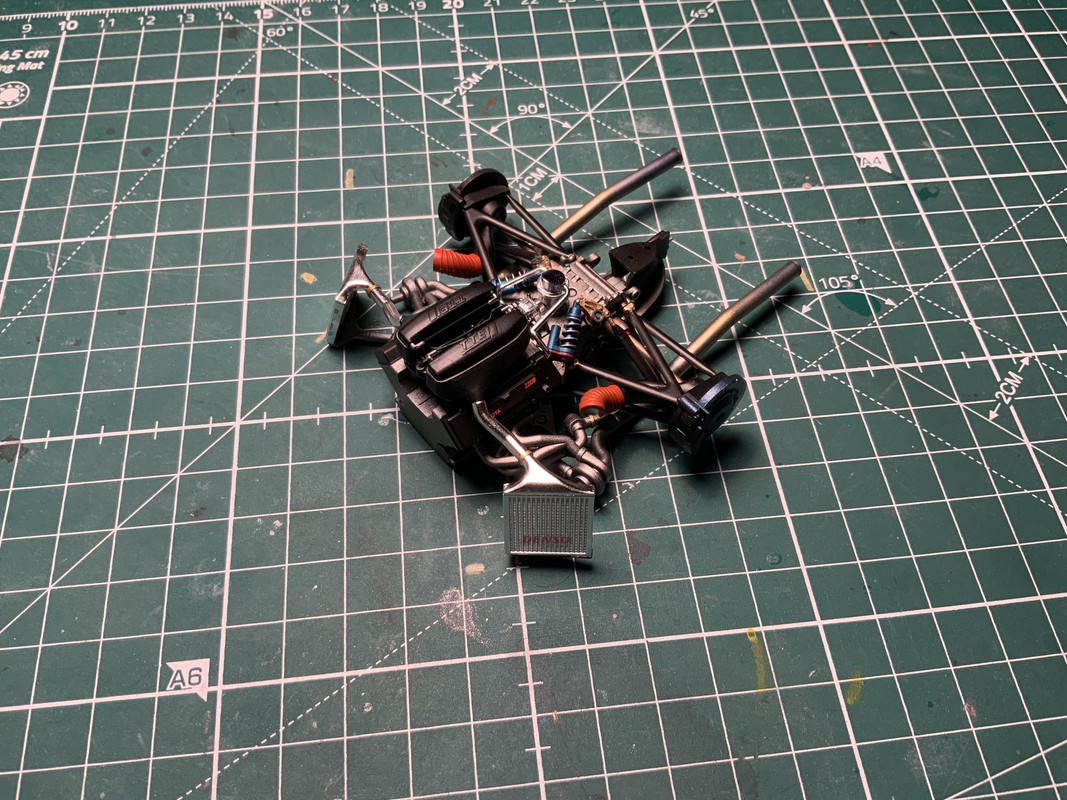 Just finished the first major sub assembly on the Toyota Lemans racer. Typical Tamiya everything fits well. I did have a small issue with the exhaust. One sits a little higher than the other. I’ll correct that later. Thanks for taking a look. Any criticism is welcome. MRP and Tamiya paints.