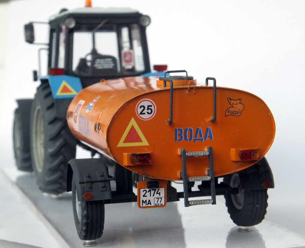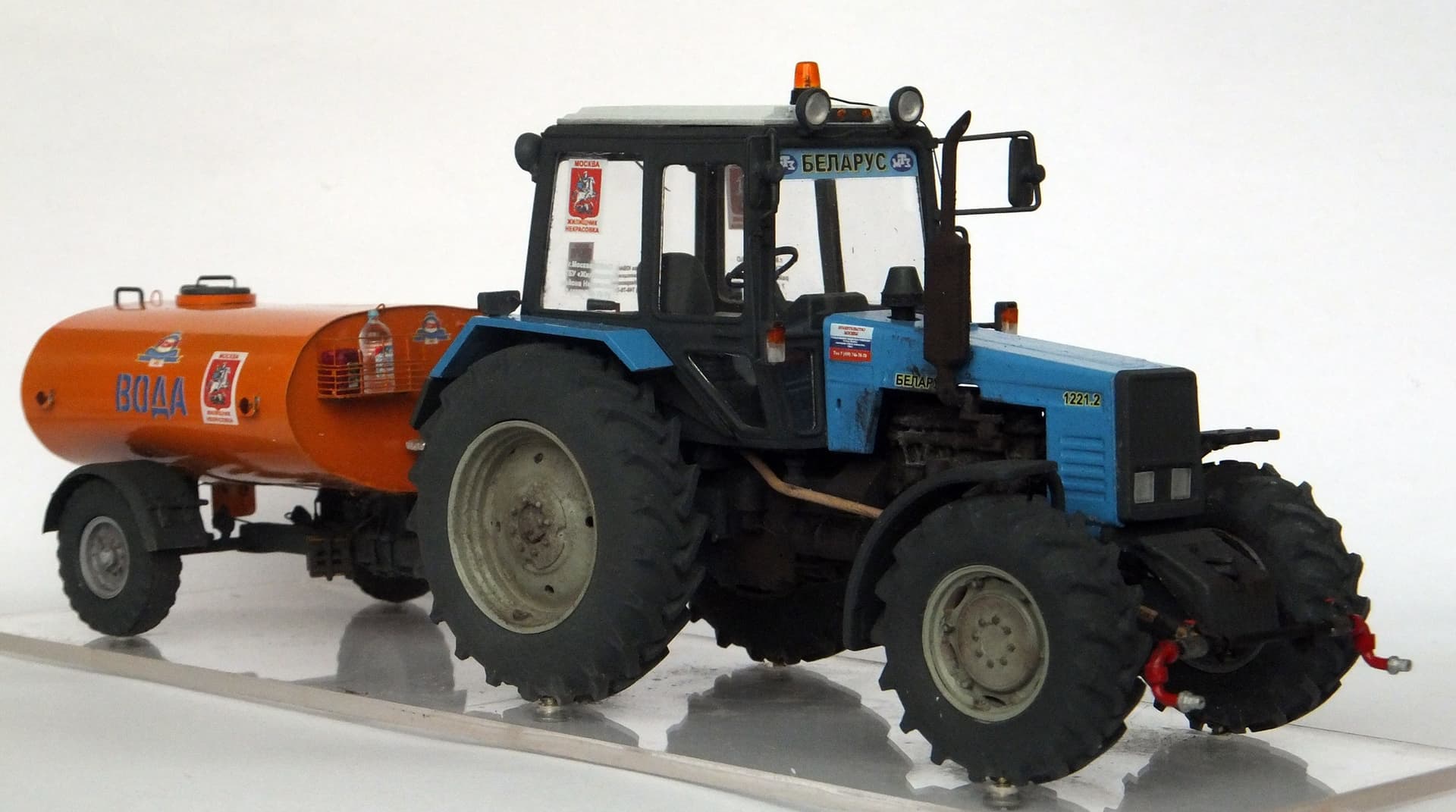 Model of the MTZ-1221.2 tractor with a trailer and equipment for road irrigationf.