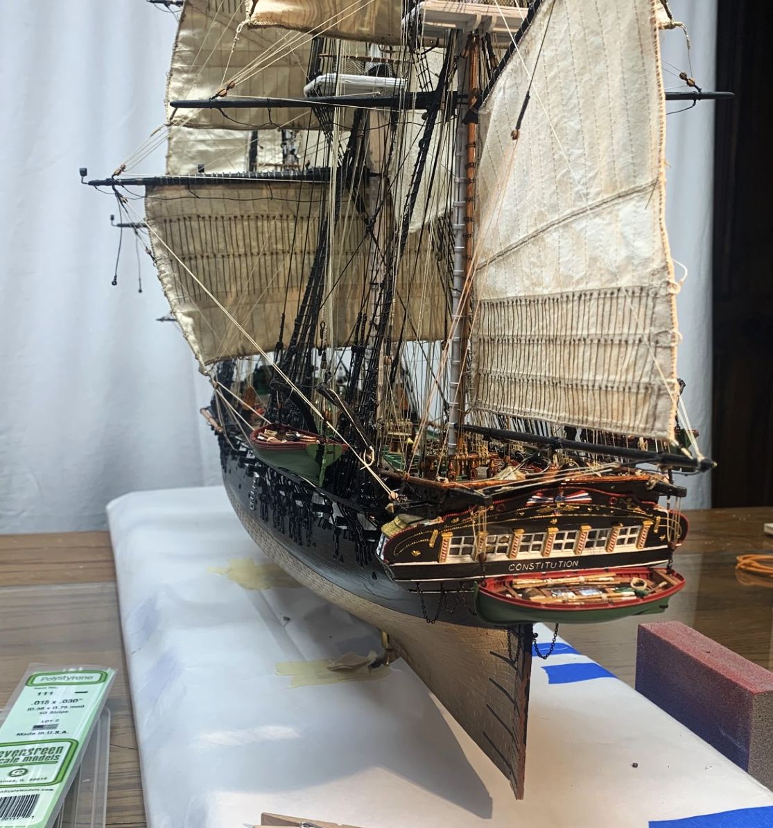 A couple of years ago, a local distiller out here in PA blended a special batch of Carribean rum, and passed every drop of that batch through a piece of wood off the USS Constitution. They called it Shipmate Heritage Rum, and i bought a bottle because a remembered visiting the ship on a class trip when i was a kid. If i hadn’t opened and drank about half the bottle i would send it to you!! This is a herculean effort, and it has been an absolute pleasure to follow along with the progress. Truly inspirational for those of us who sometimes fall into modeling slumps and breaks.