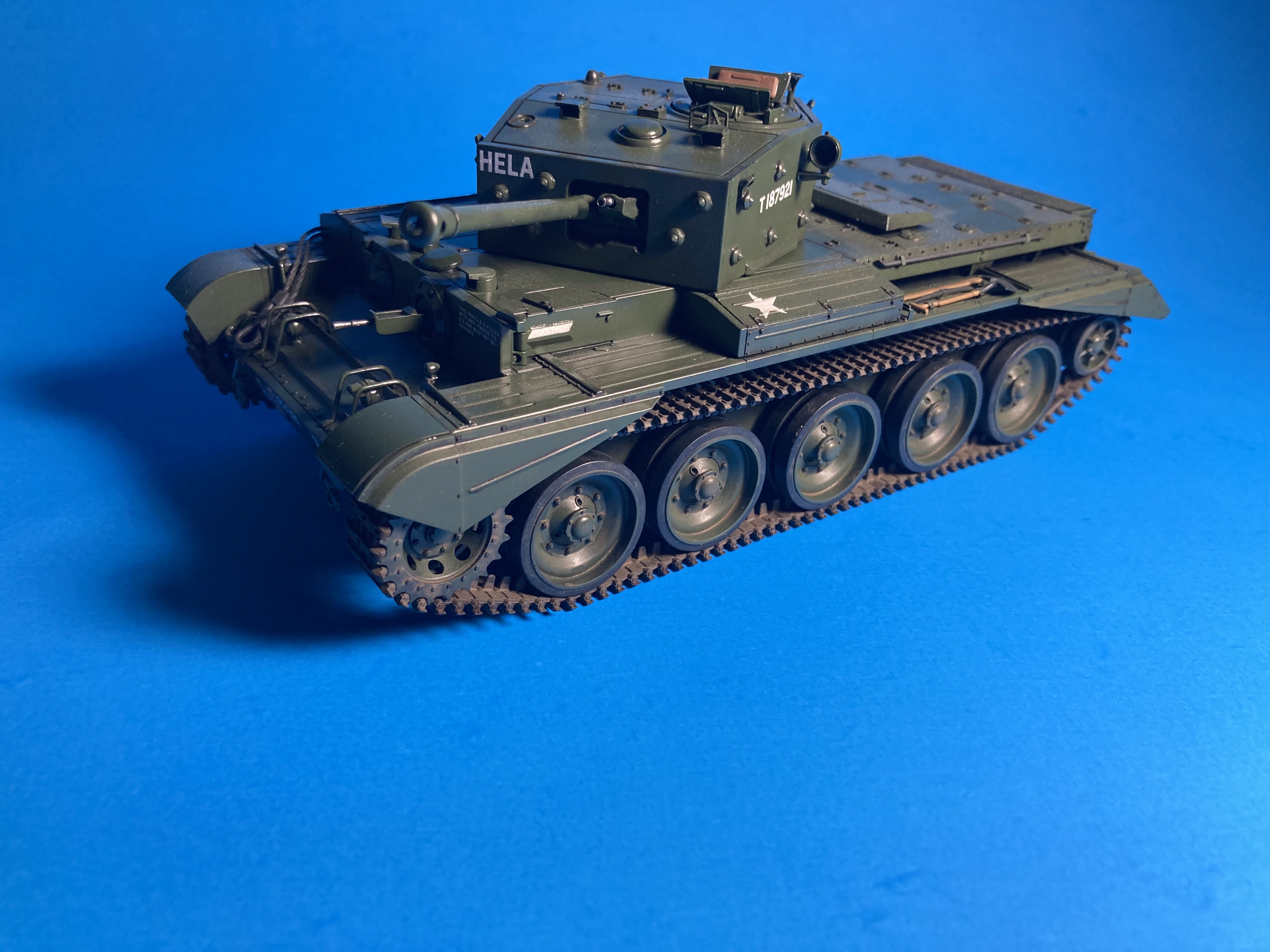 Work continues on the Cromwell. Got the fenders attached and a periscope cover I somehow forgot to add. Goal is to finish it today just needs some weathering on the fenders.