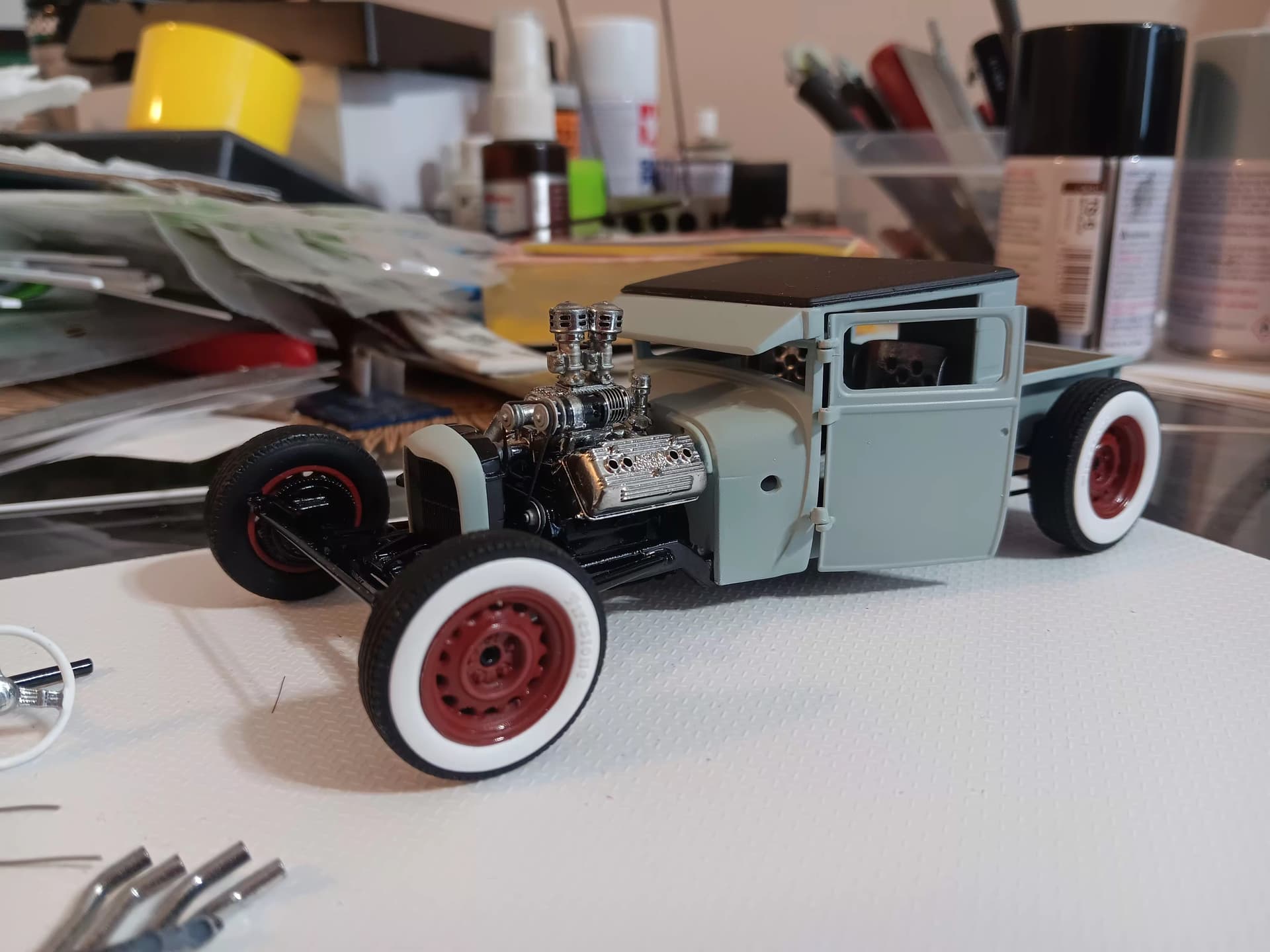 Then I glued the canopy in place… the rubber band kept it in place while the glue set