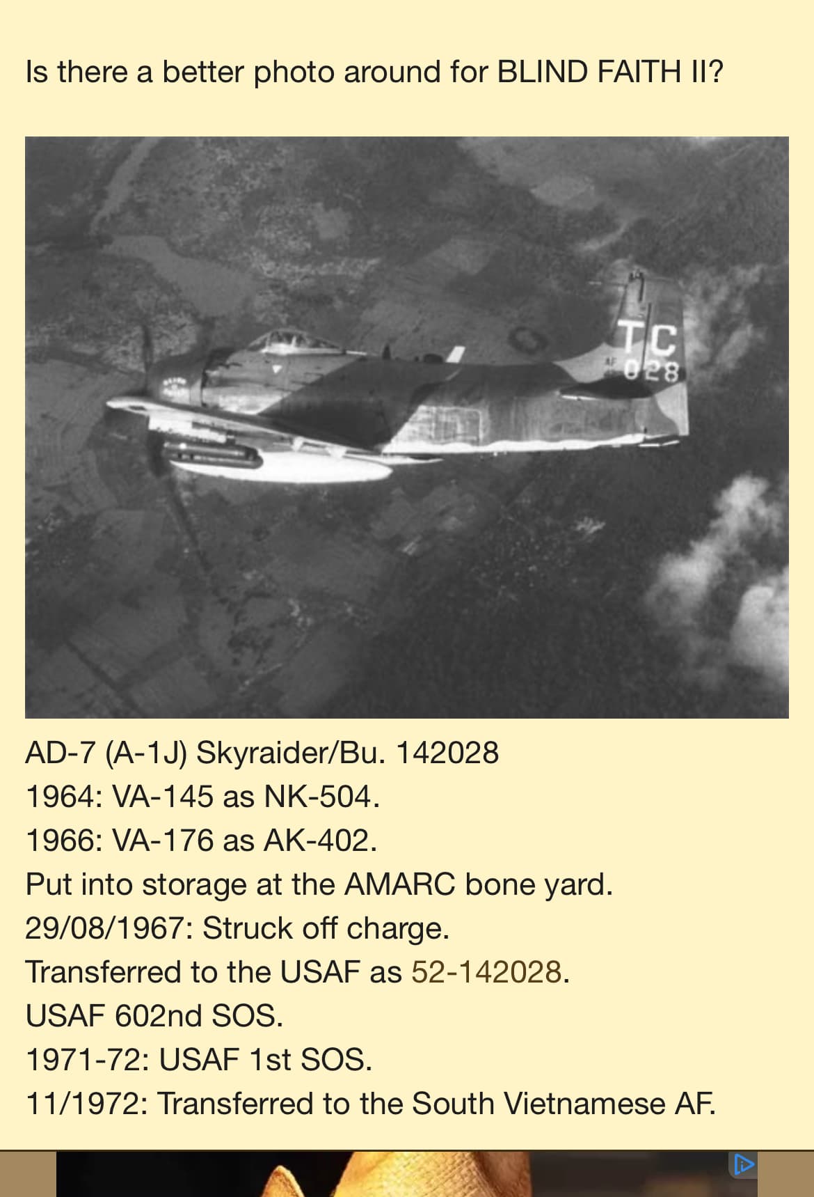 I’ve finally finished all the research this afternoon. Bob told me yesterday, that there is an expert on all things A-1 Skyraider. Today I spoke at length with Bryon Hukee. He was at NKP the same time Bob was. They became close friends. He had quite a few photos of Bob and his plane he shared with me. (Great reference photos).