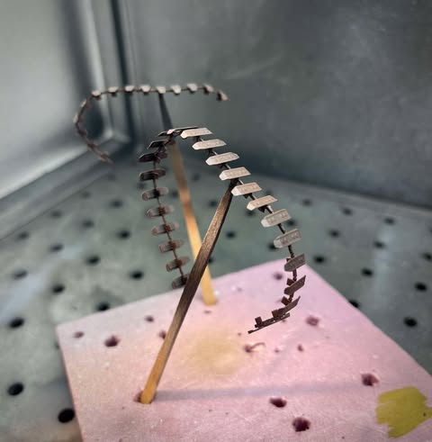 As you can see the tracks fit naturally on the wheelsets, and bend nicely around the curve. I did find that those little joints between the tracks, though, work-harden like crazy. You get one bend and unbend – the second bend breaks them. I probably should have annealed them before beginning assembly I guess? Lots of solder repairs later, I had them mostly bent and ready for primer.