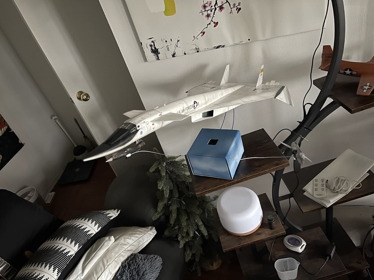 Got things sealed up and glued up the final pieces. I put the plane on the base, but when I got home that evening, the mounting frame, the metal struts that I had put together had broken apart from the stress. So I’m now trying a different glue and seeing if that works.